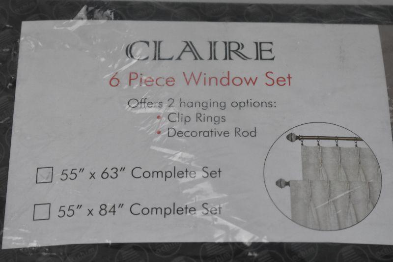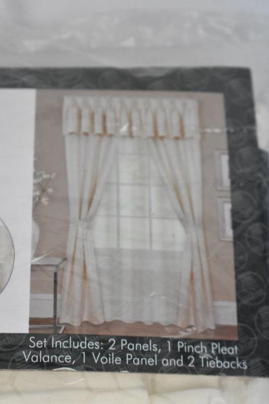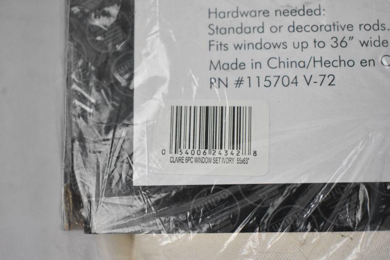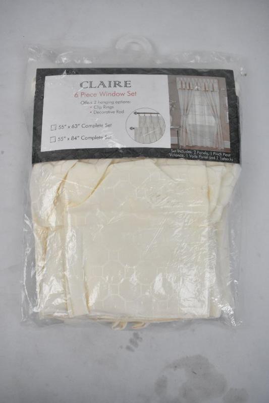 6 Pc Window Curtain Set by Claire: Panels, Valance, Panel, Tiebacks, Ivory - New