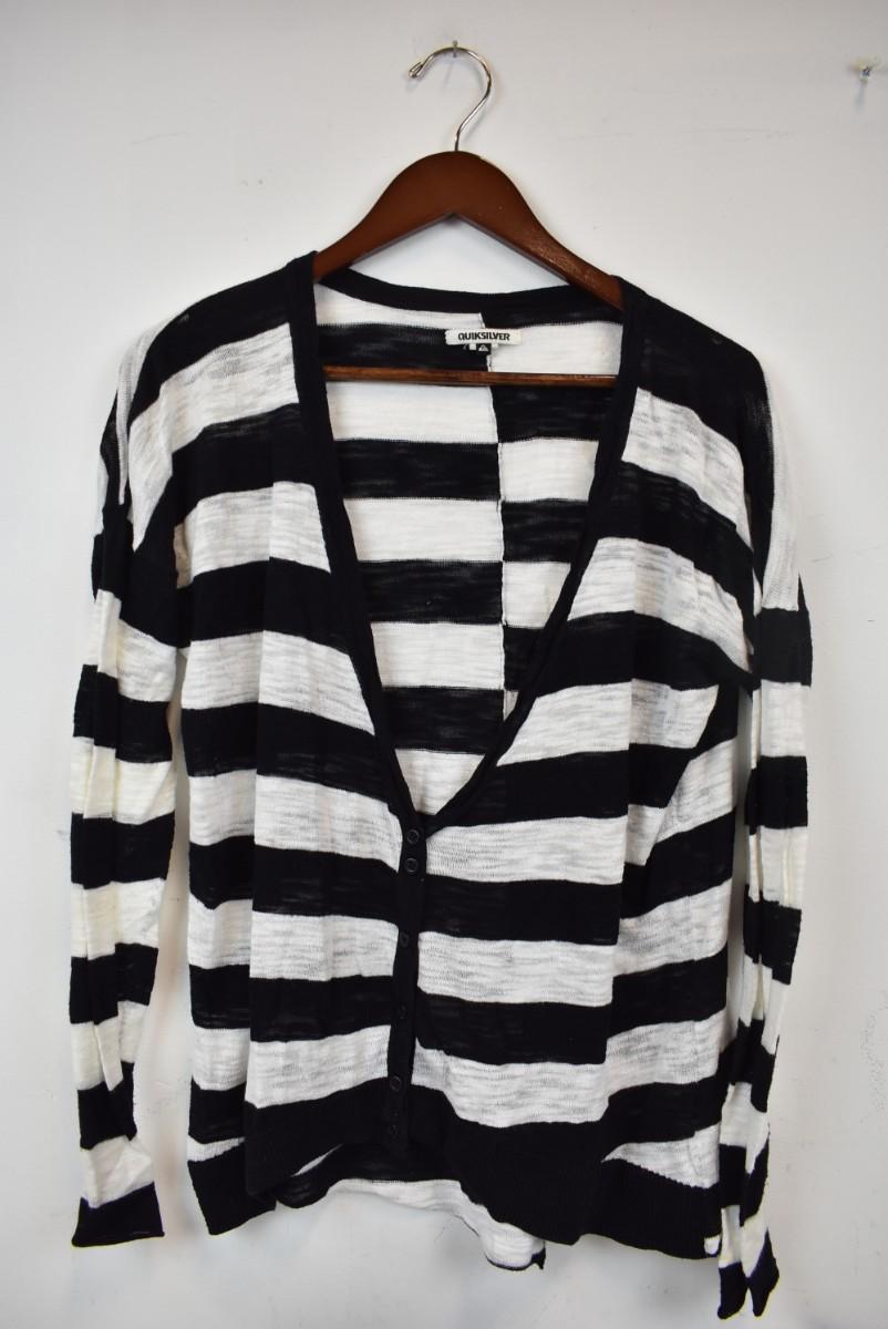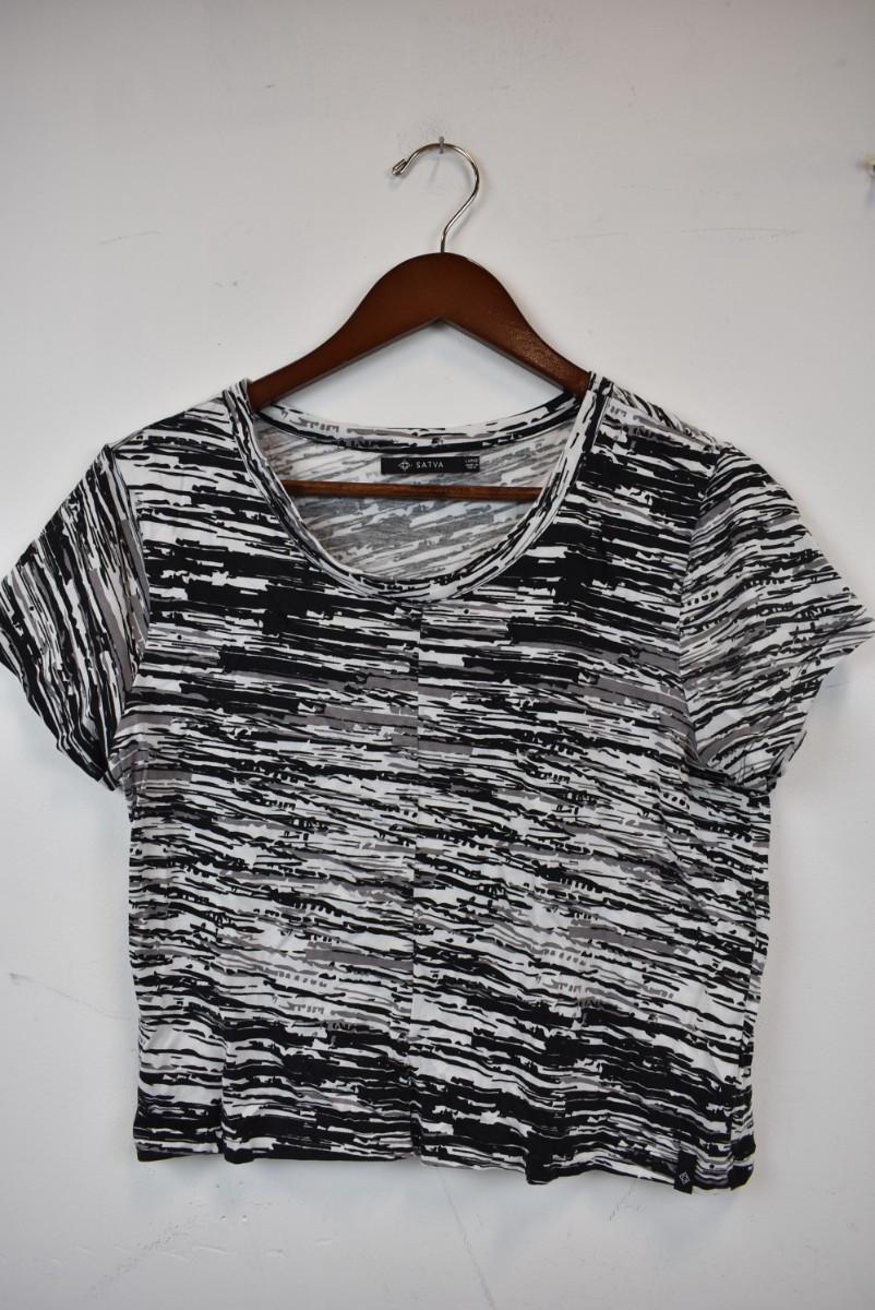 6 pc Women's Clothing B&W: Shirt size 2, Black Gap Jeans sz 30S, Quicksilver sz L, Granite size Med, Satva sz L