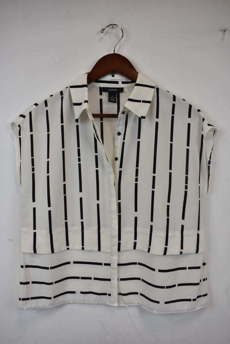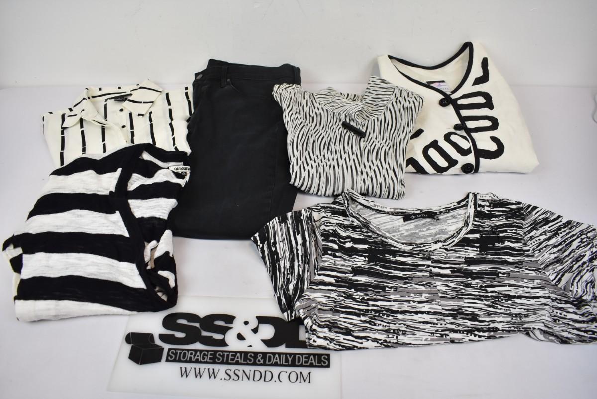 6 pc Women's Clothing B&W: 5 Shirts size 2, Med & Large. Black Gap Jeans sz 30S