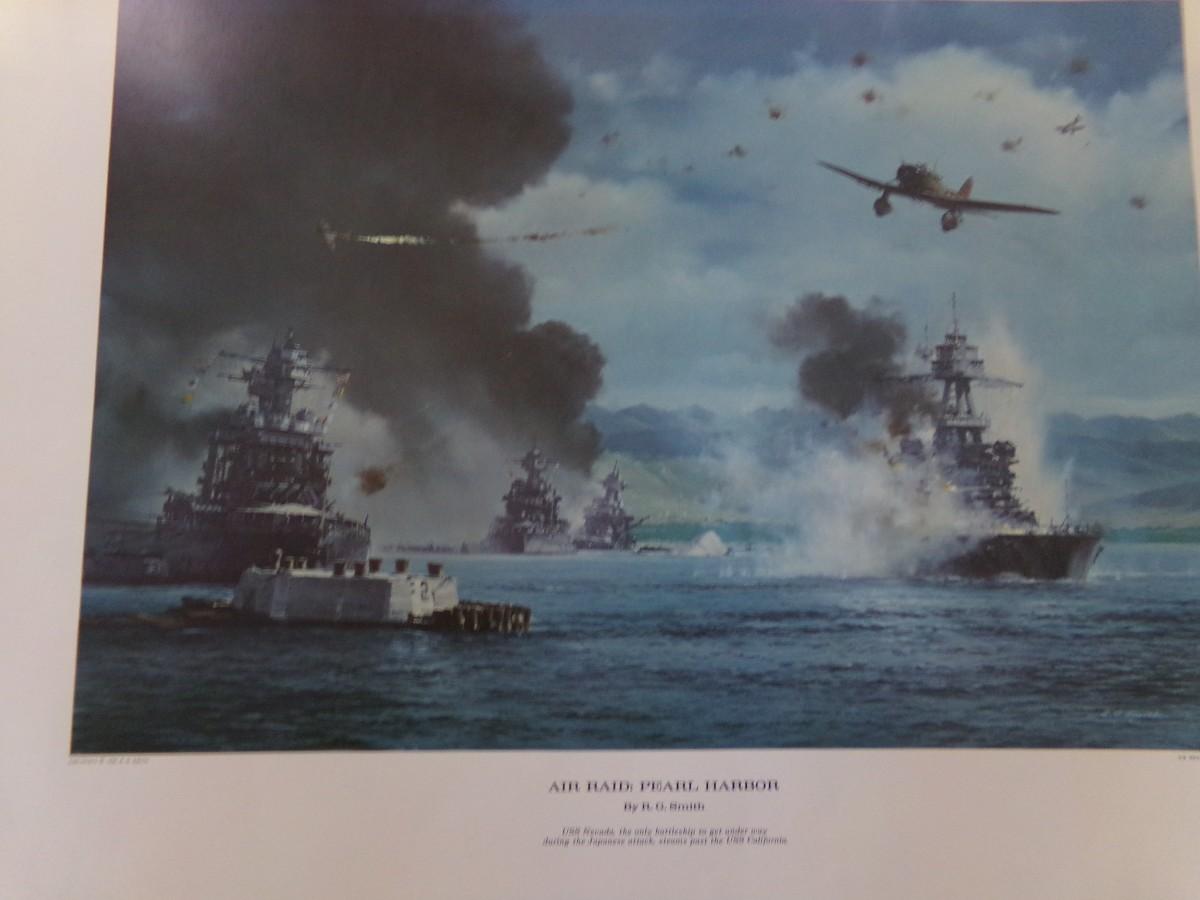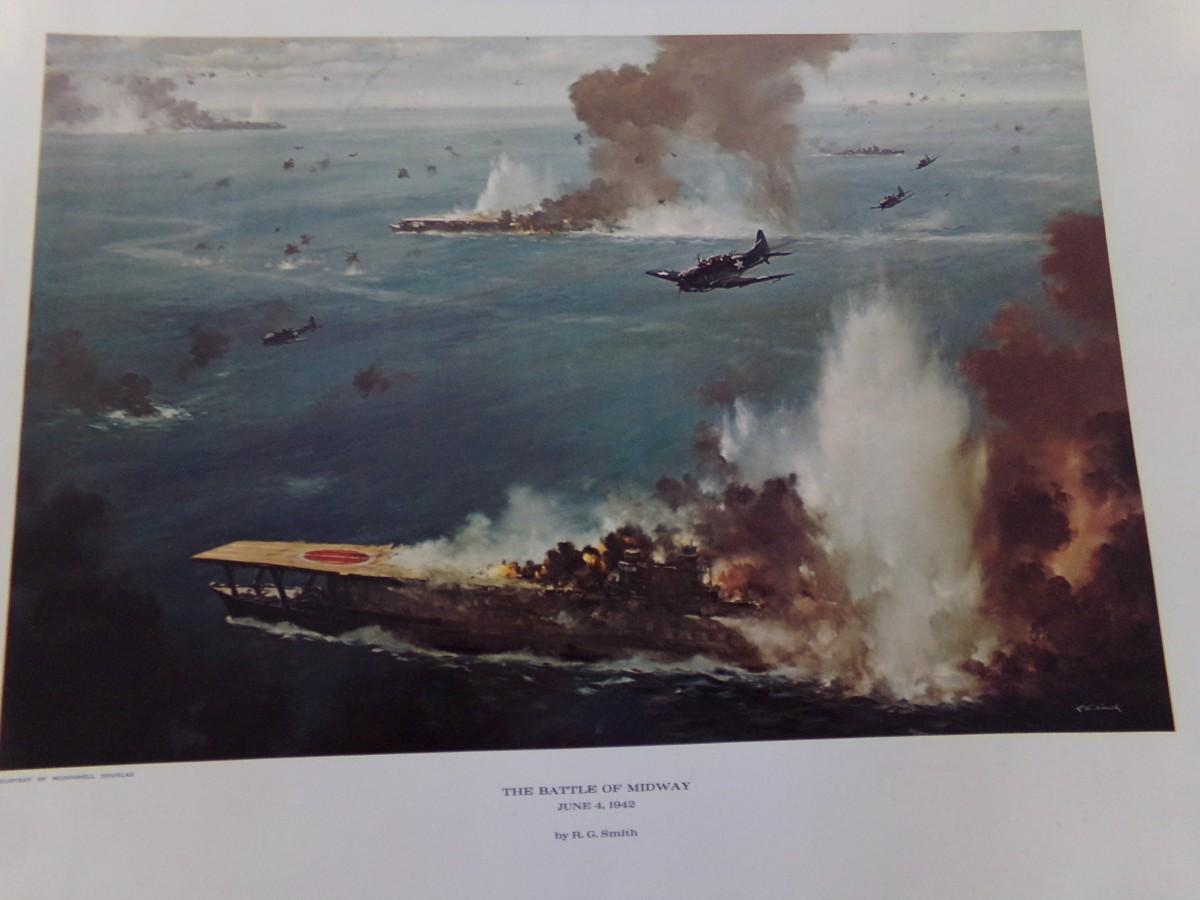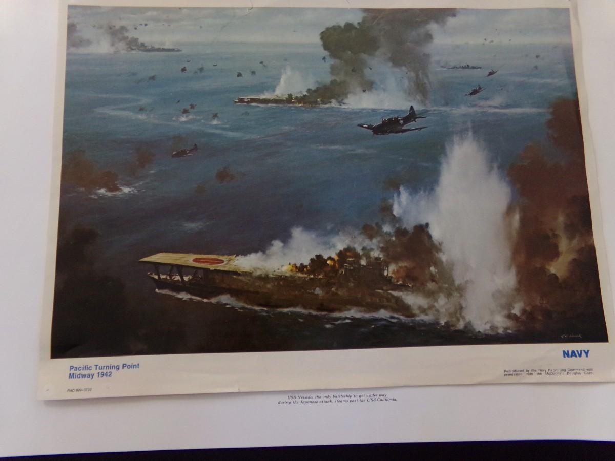 AIR RAID PEARL HARBOUR 18" X 23", PACIFIC TURNING POINT MIDWAY 1942. 14" X19",