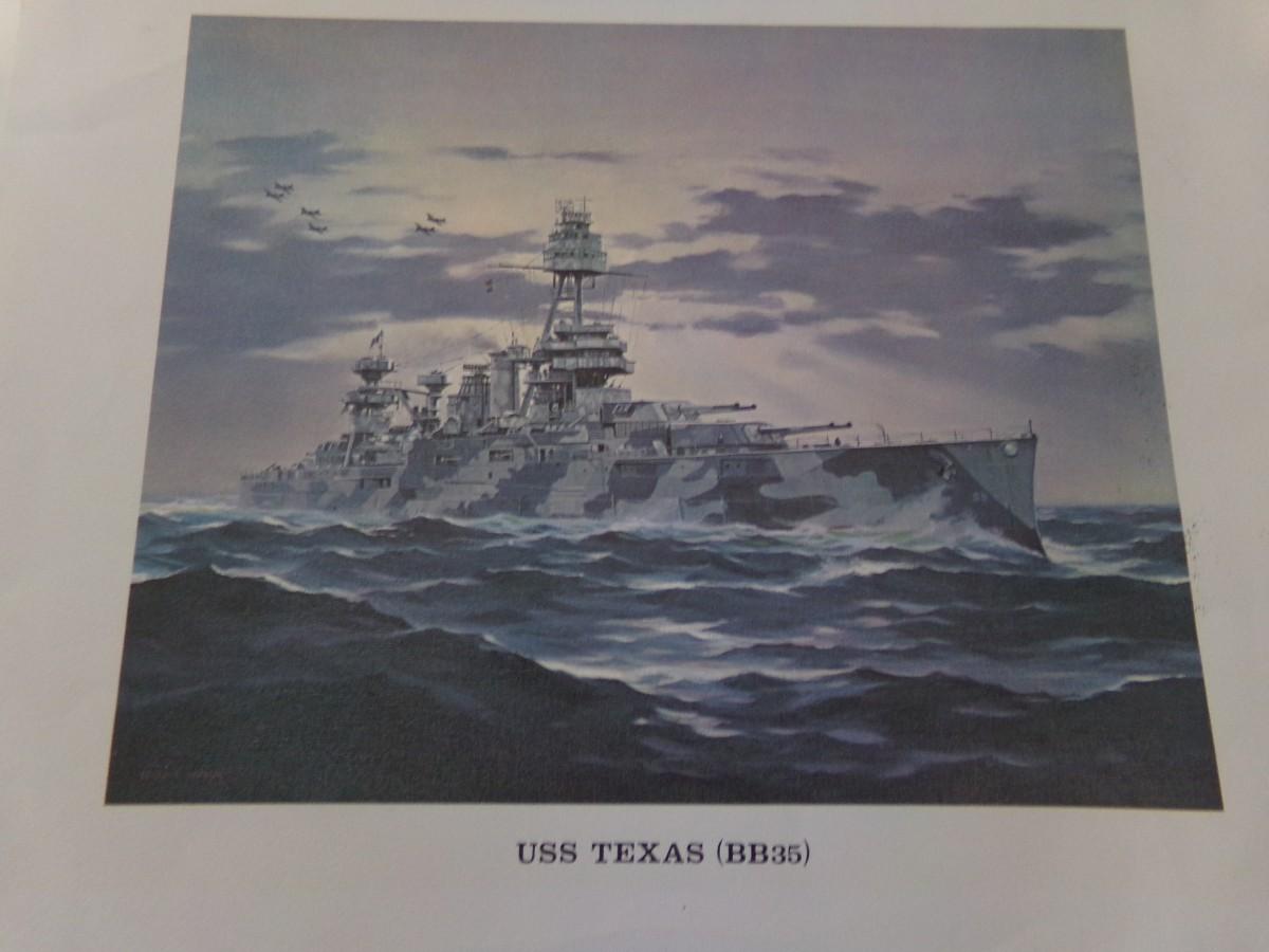 USS TEXAS (BB35) 16" X 20", THE BATTLE OF MIDWAY JUNE 4, 1942. 16" X 20".