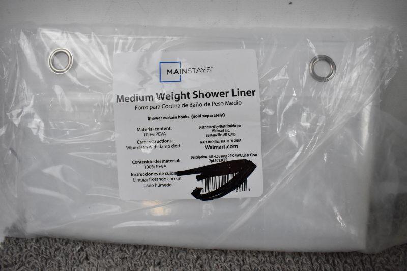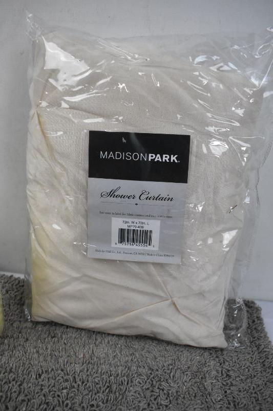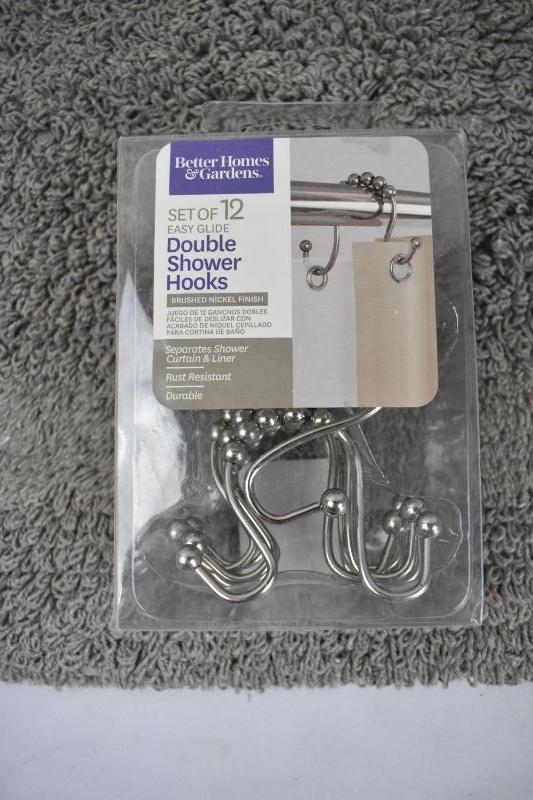 6 Piece Bathroom Decor Set: Shower Curtain, Liner & Hooks, Rug, Towel Bar - New