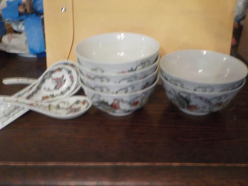 6 Piece Chinese soup set w/ spoons.