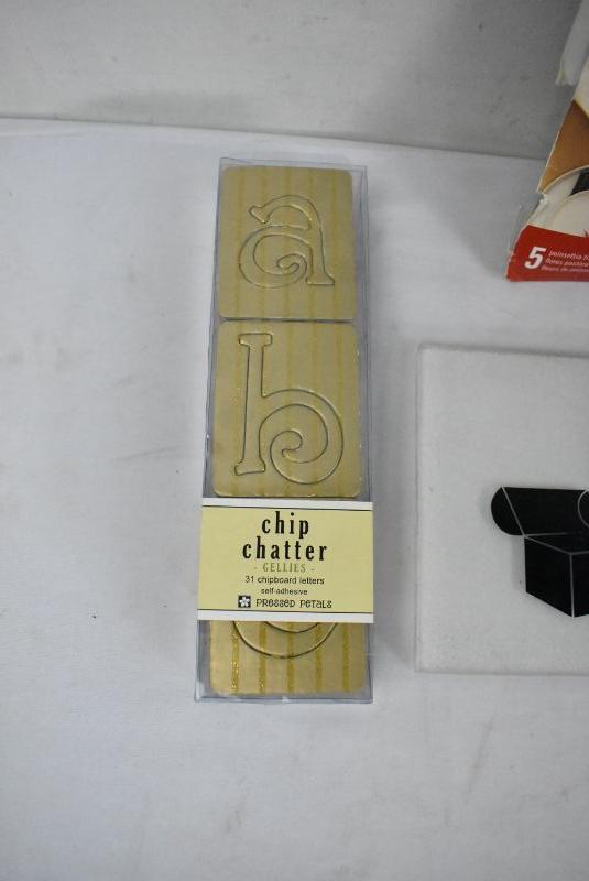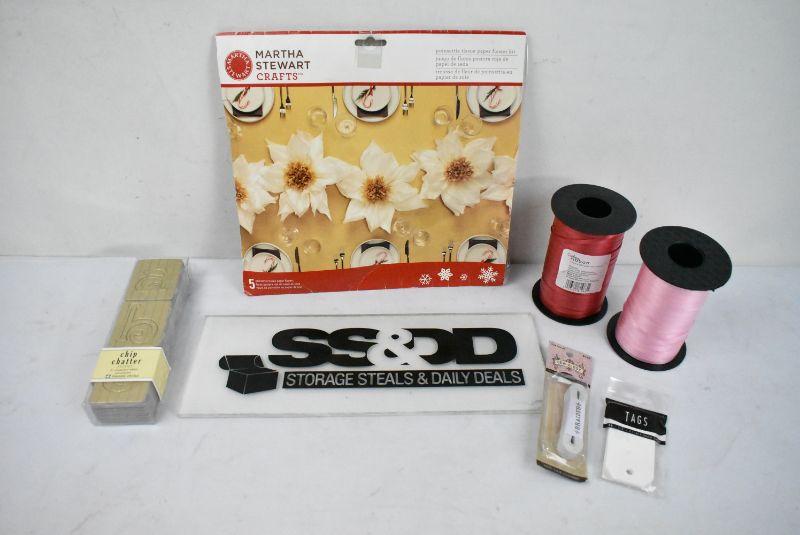 6 Piece Crafting Lot: Paper Flowers Kit, Chipboard Letters, Elastic, Tags, and Ribbon - New