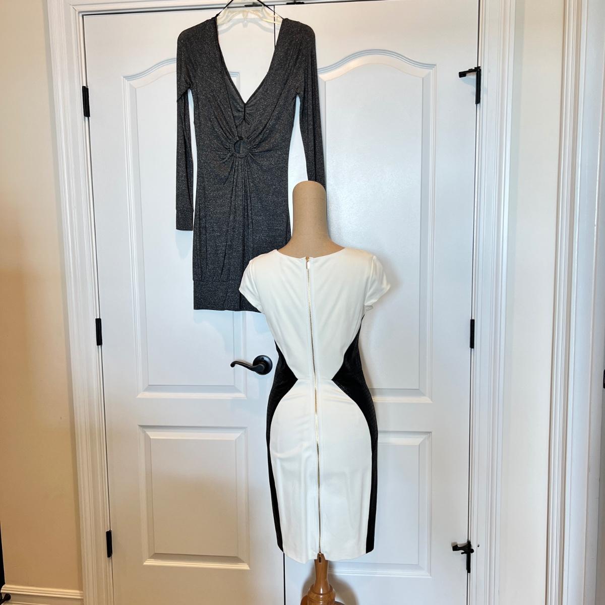 These dresses are all size Small in the 2-4 range. New Calvin Klein leather, new Knitee, new long sleeve Chic Boutique Rose. More pictures are coming soon.