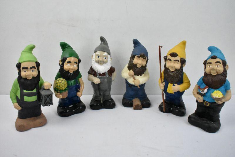 6 Piece Garden Gnomes: Ceramic, Hand Painted