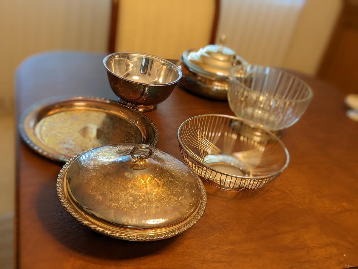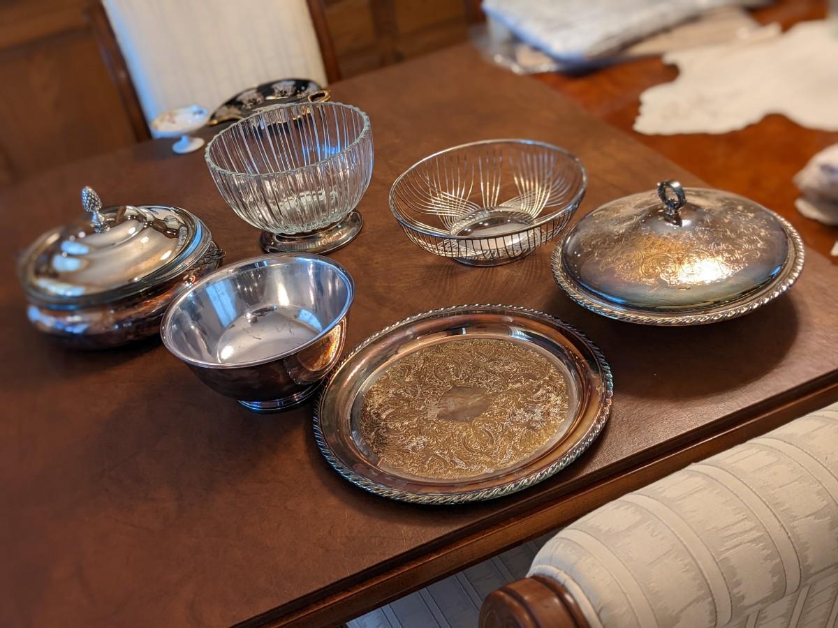 6 Piece Glass and Silver Plated Serving Dishes