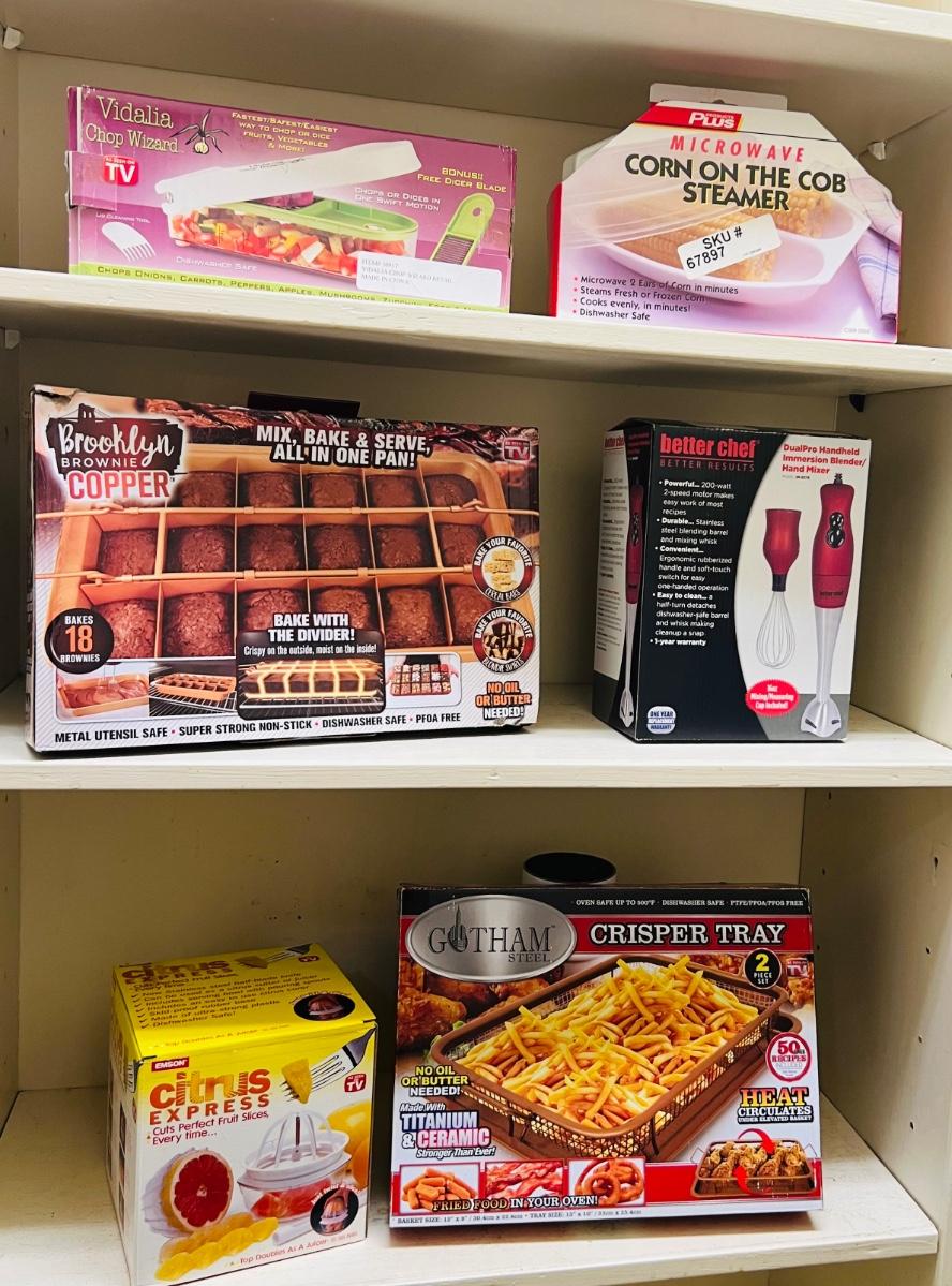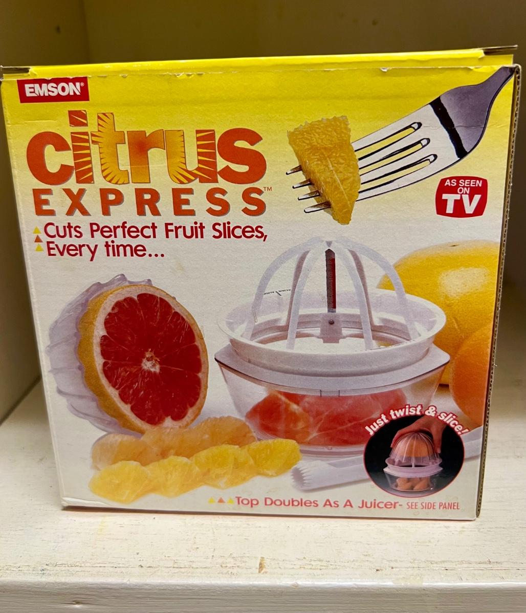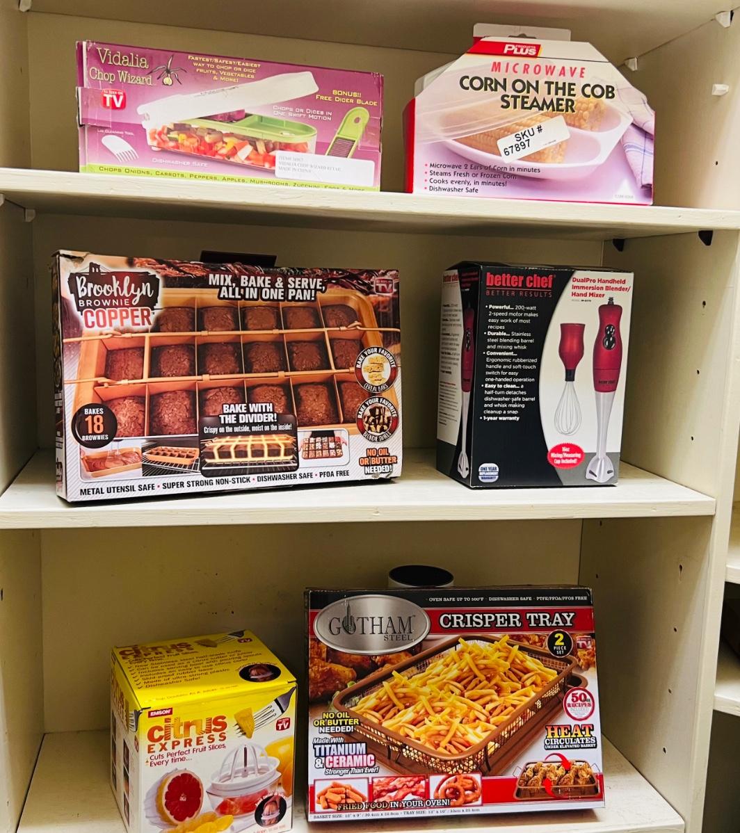 All items are new in boxes! Six piece kitchen stuff lot includes one Brooklyn Brownie Copper brownie pan. Better Chef Dual pro handheld immersion, blender/hand mixer, Gotham steel crisper tray, Citrus Express Juicer, Vidalia Chop Wizard And Corn on the cob steamer microwave dish.