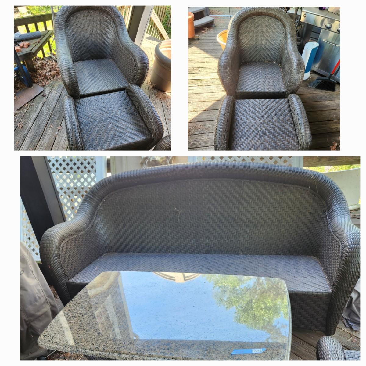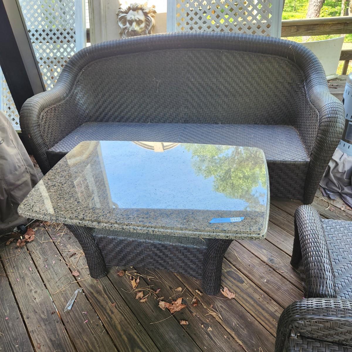 6 piece patio set sofa 2 chair & ottomans Beveled Edged Table Top