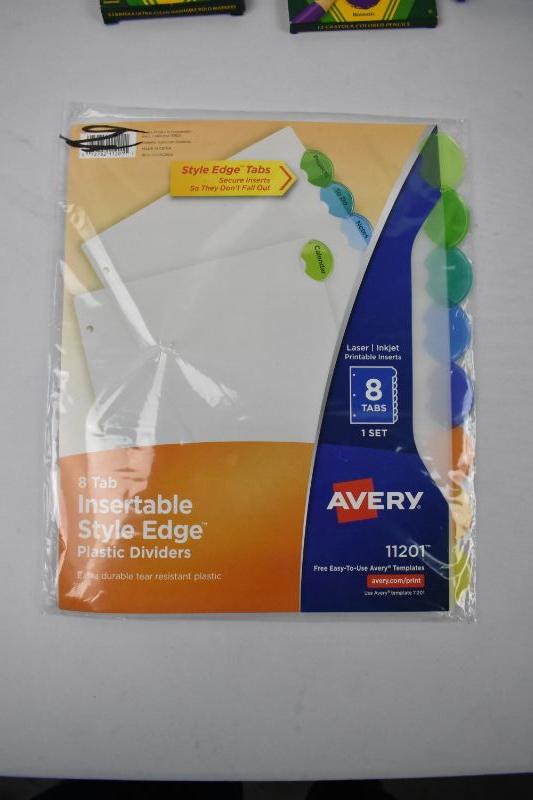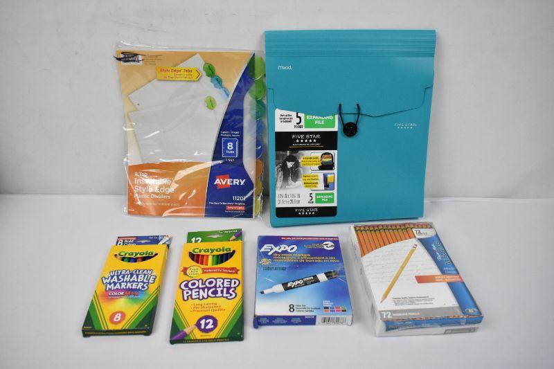 6 Piece School Supplies: Dividers, Expanding File, Markers, Colored Pencils, Multi Dry Erase Markers, and Pencils - New