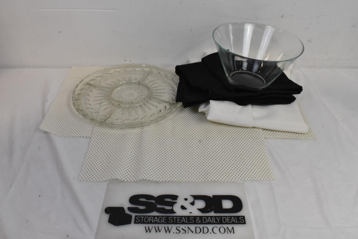 6 Piece Table Decorations: Tablecloths, Glass Bowl, Plate, etc