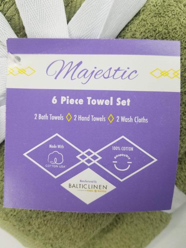 6 piece Towel Set by Majestic, Moss Green Color - New