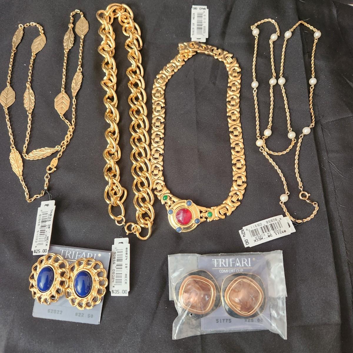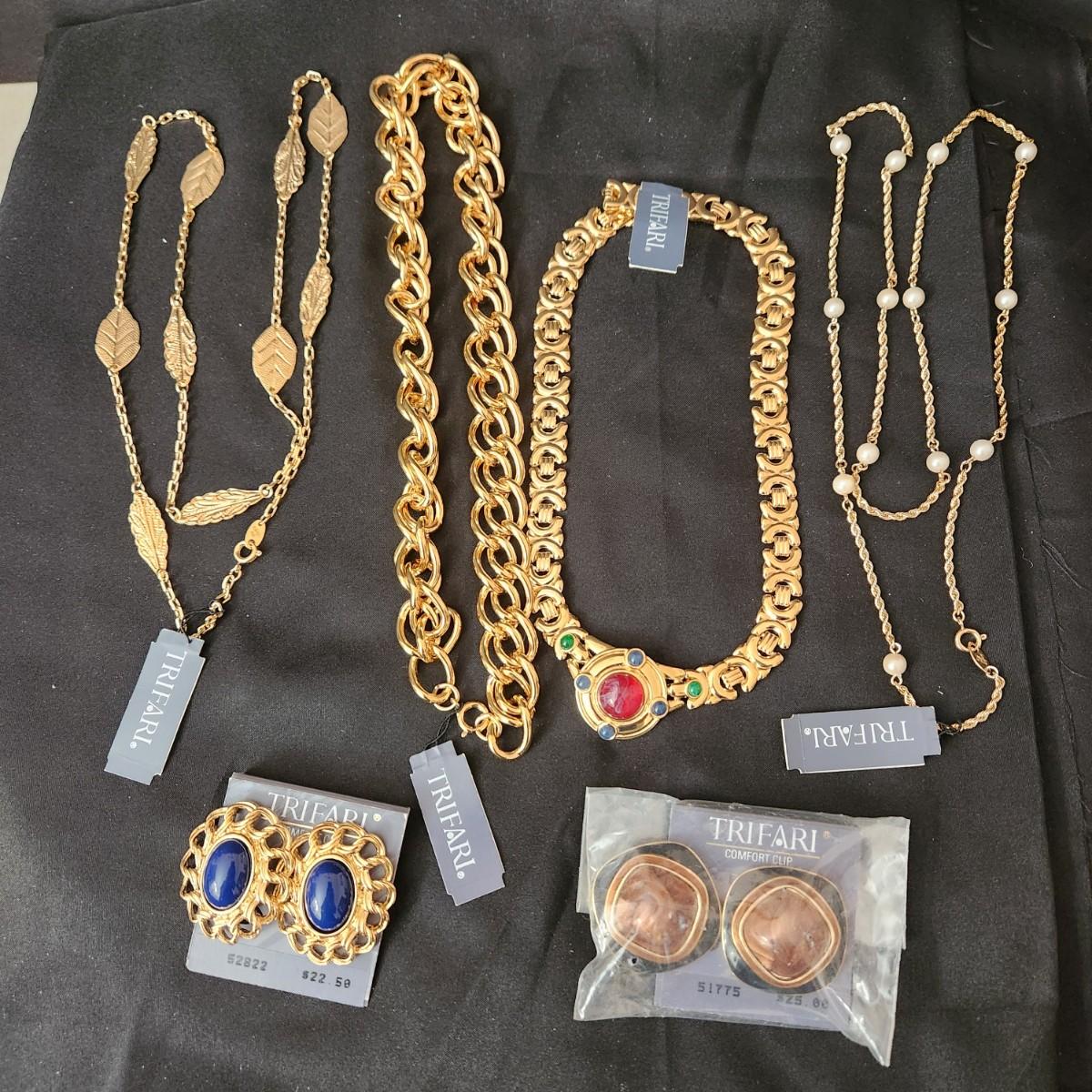6 Piece Trifari Jewelry Lot Necklaces Earrings w tags