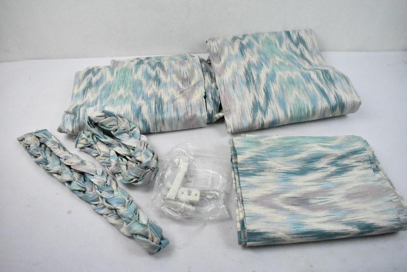 6 Piece Vintage Curtains Set: Watercolor Ikat Pattern, 2 Drapes (10 Pleats x 85" Long Each), 2 Valances (12" x 160" Each), 2 Tie-Backs (38" Each) Some Hardware