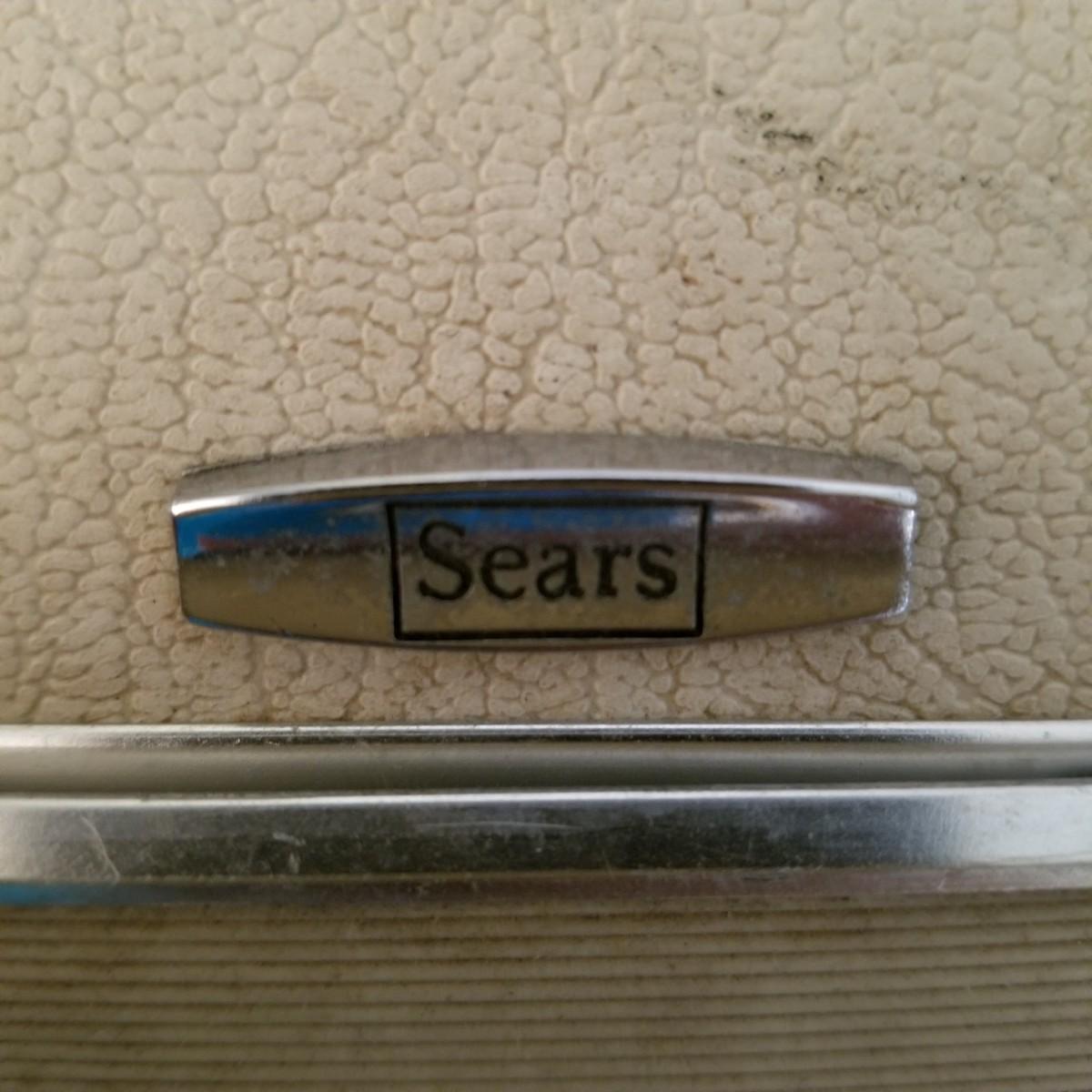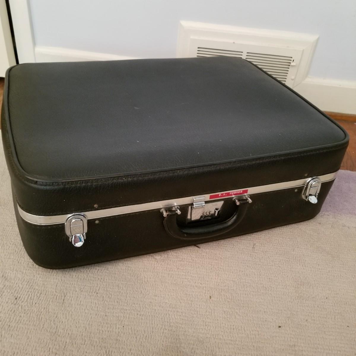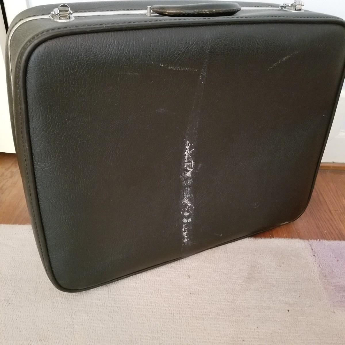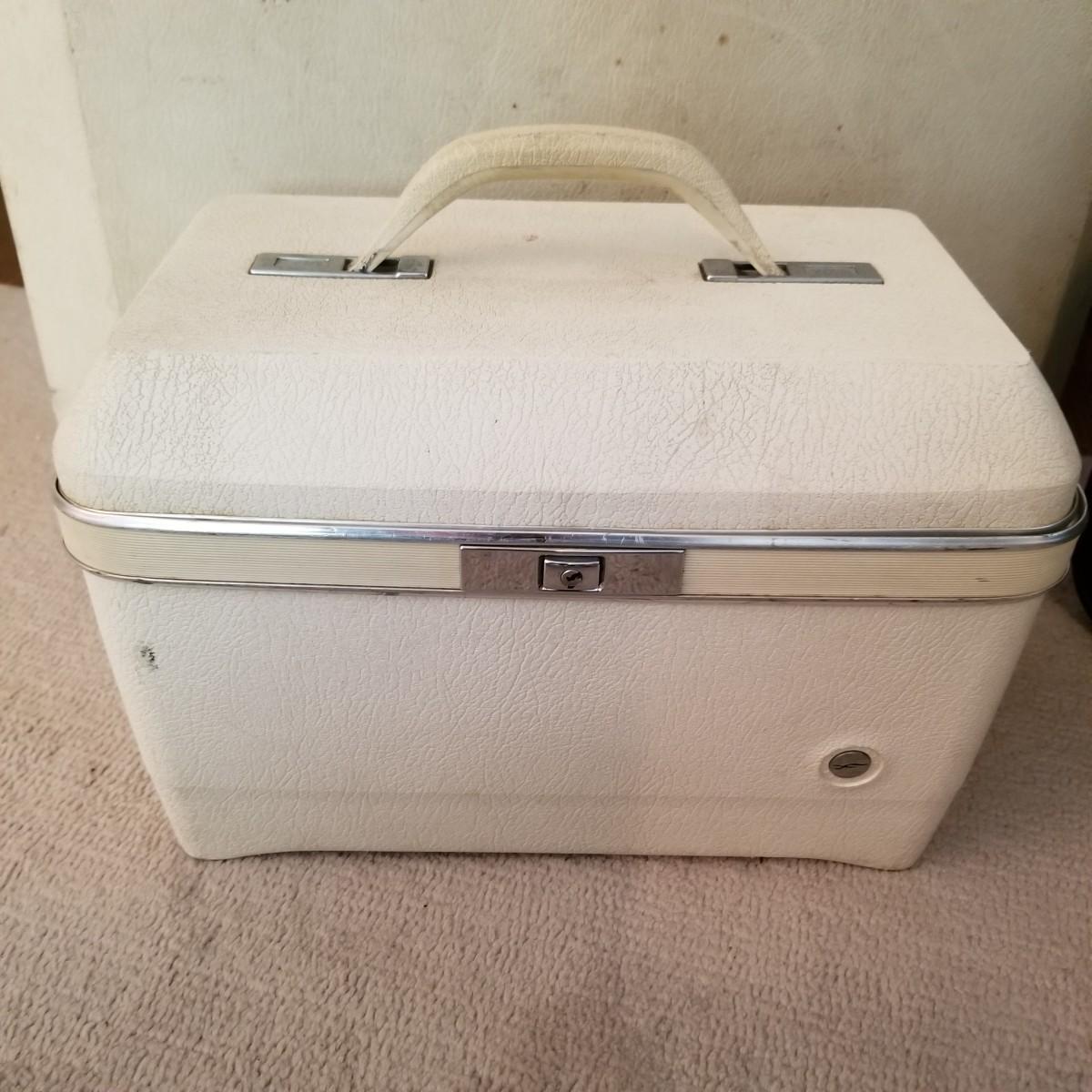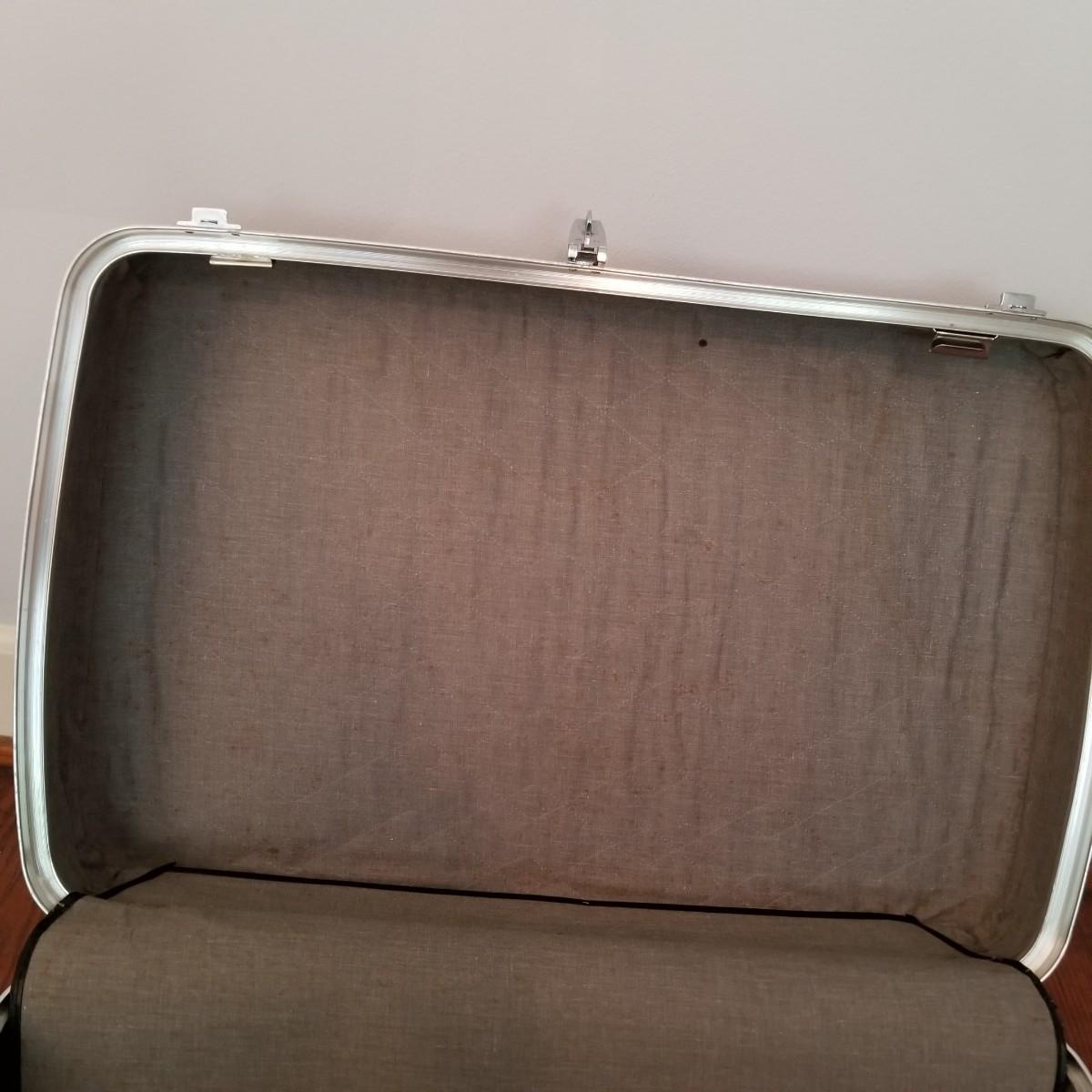 Two sets of luggage: three white pieces, three black pieces of luggage. White set is made by Sears, has hard plastic outershells. Largest piece is 28" x 21" x 8". One large, one medium and one cosmetic case. Black set is by Ventura, has combination locks and vinyl outer covering. Largest suitcase is 24" x 20" x 8", but is unable to open due to lack of combination. Other two black cases open fine. Some discoloring inside and out, see photos. Local pickup only.