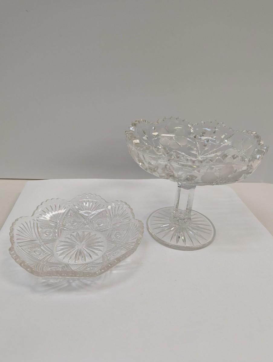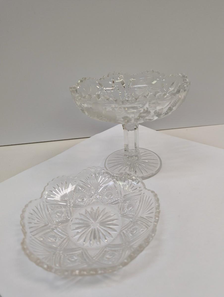6 Pieces Of Crystal Plates & 1 Candy Pedestal