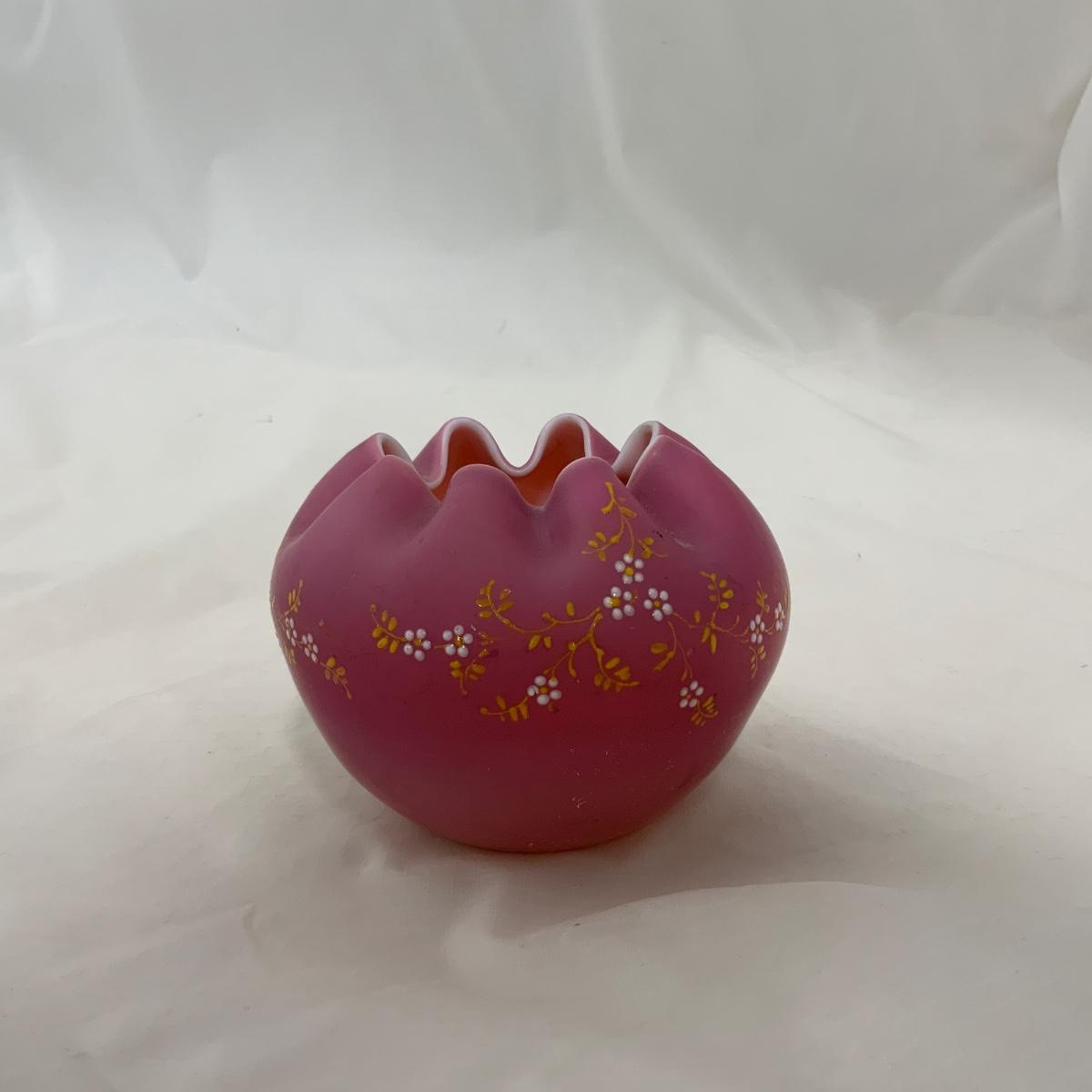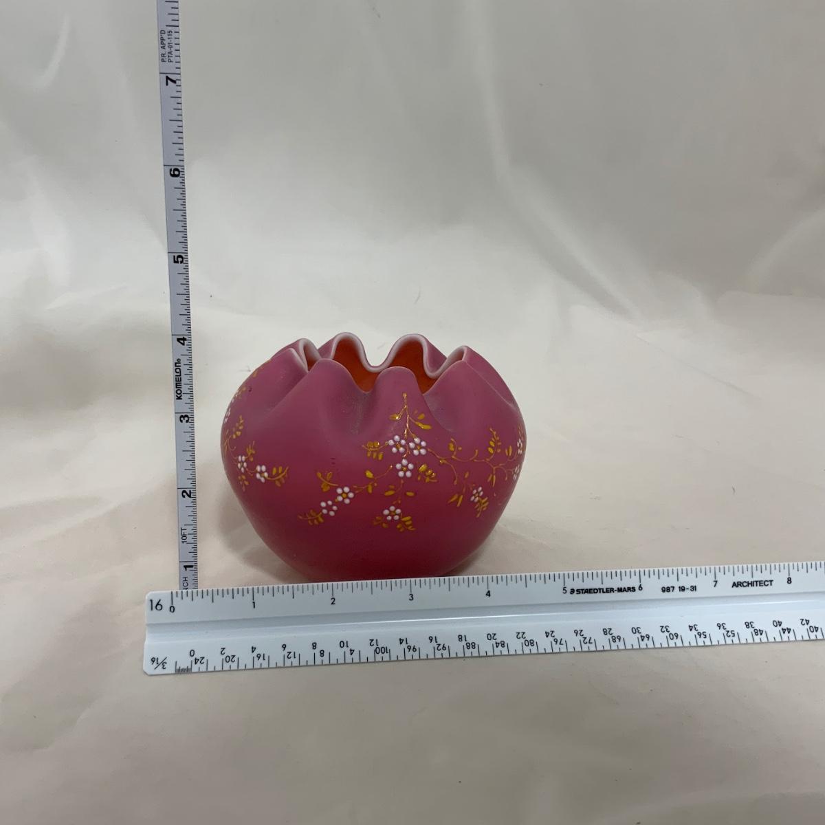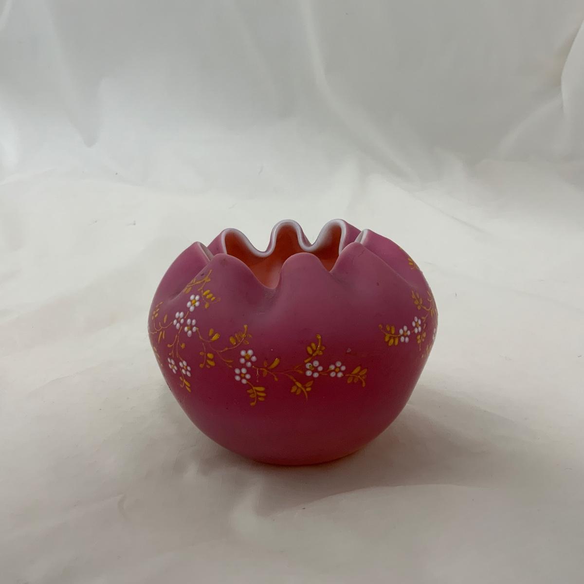 .6. Pink Hand Enameled Satin Glass Rose Bowl | c. 1900