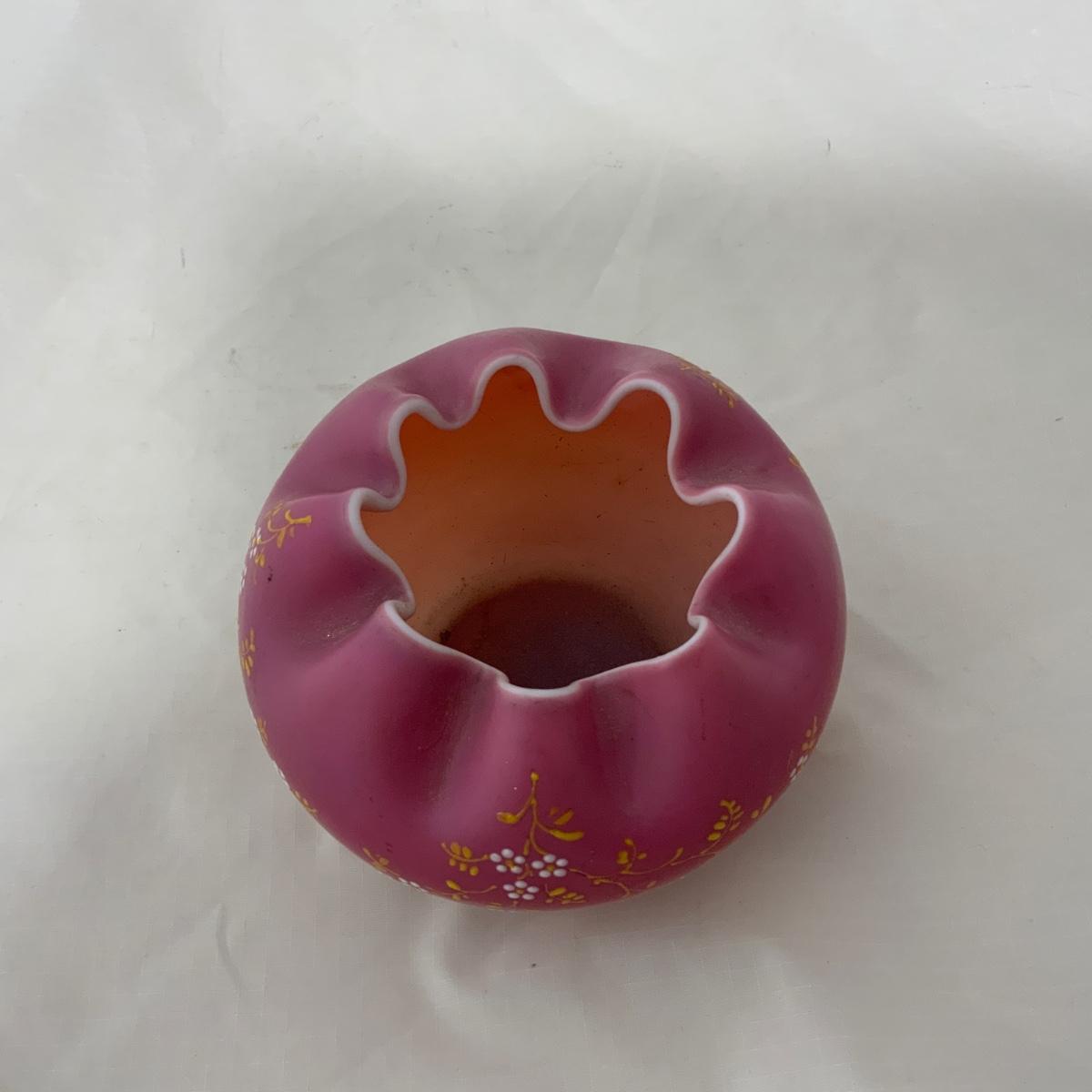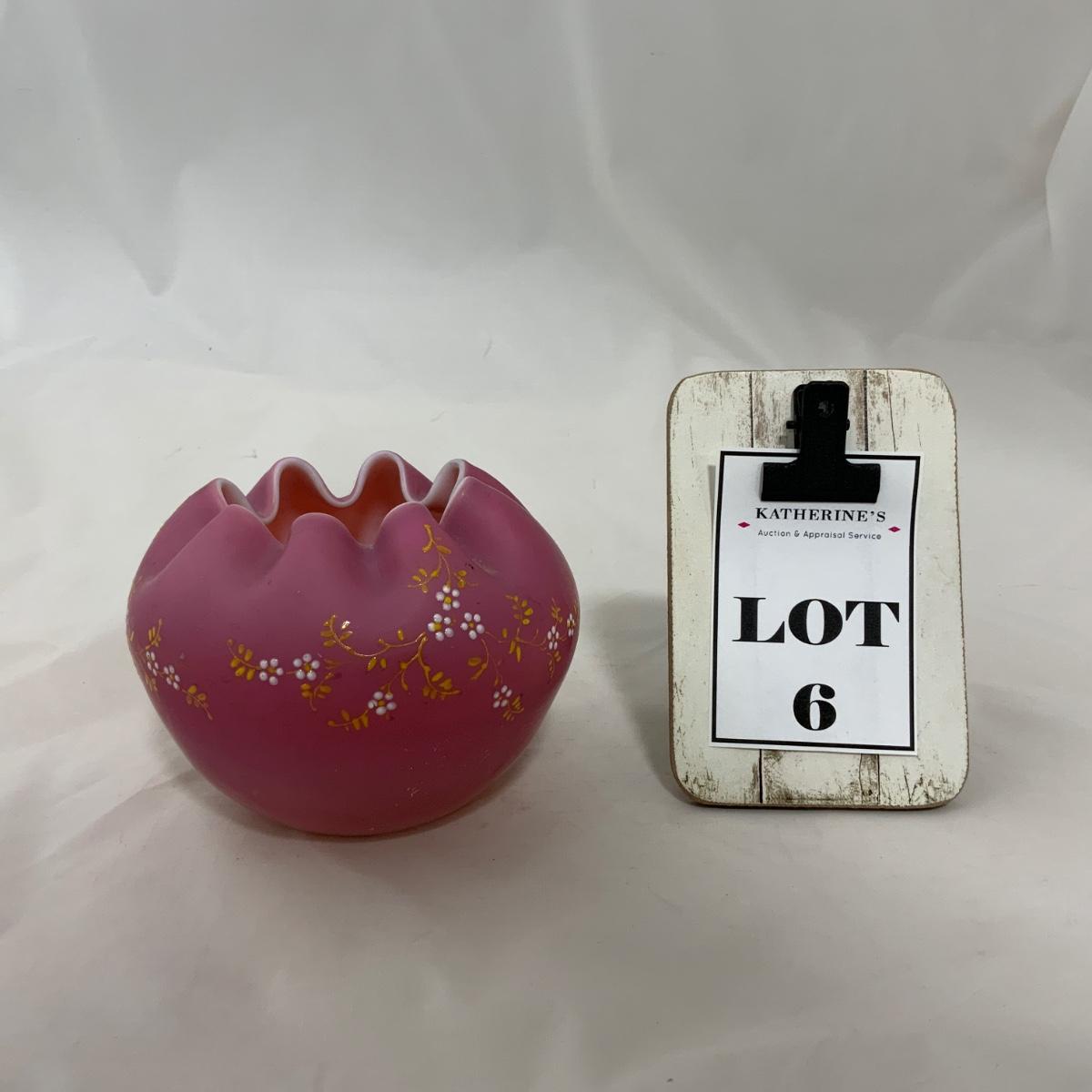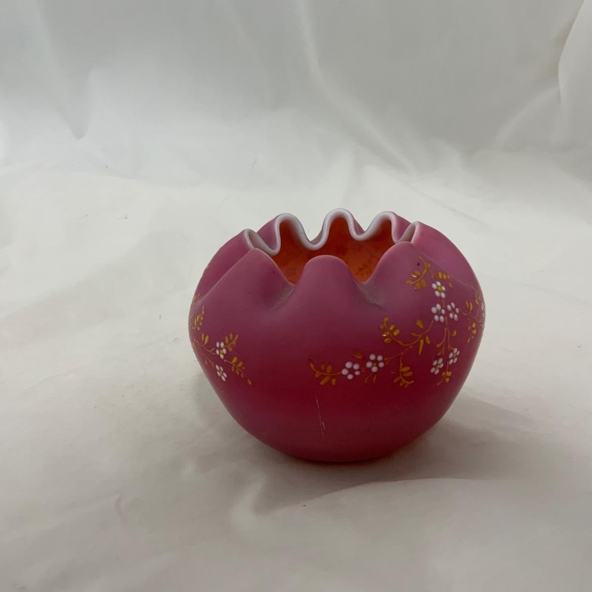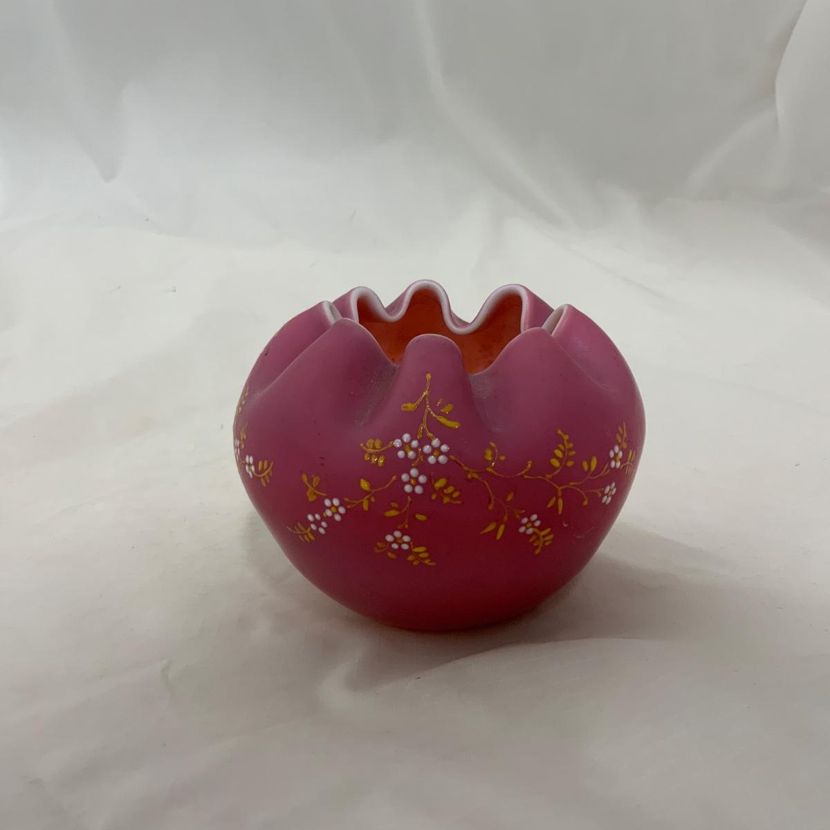 .6. Pink Hand Enameled Satin Glass Rose Bowl | c. 1900