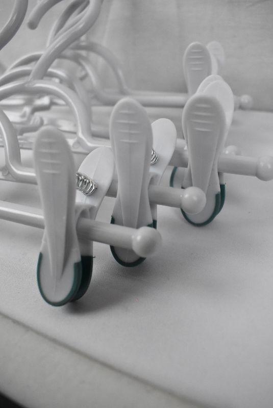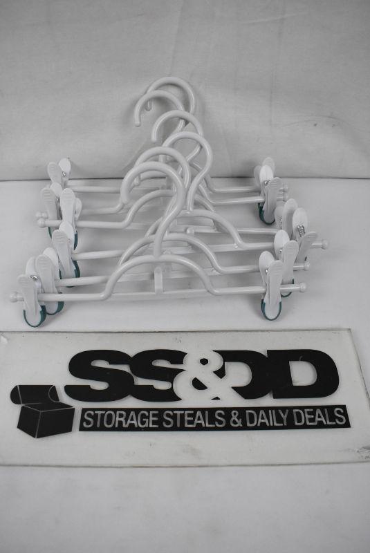 6 Plastic Hangers for pants/skirts with adjustable clips. Gray. Smaller for Kids. No packaging - New