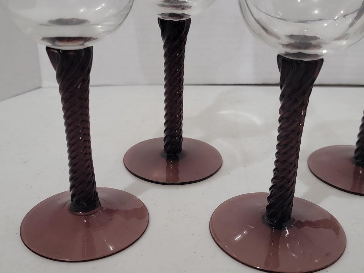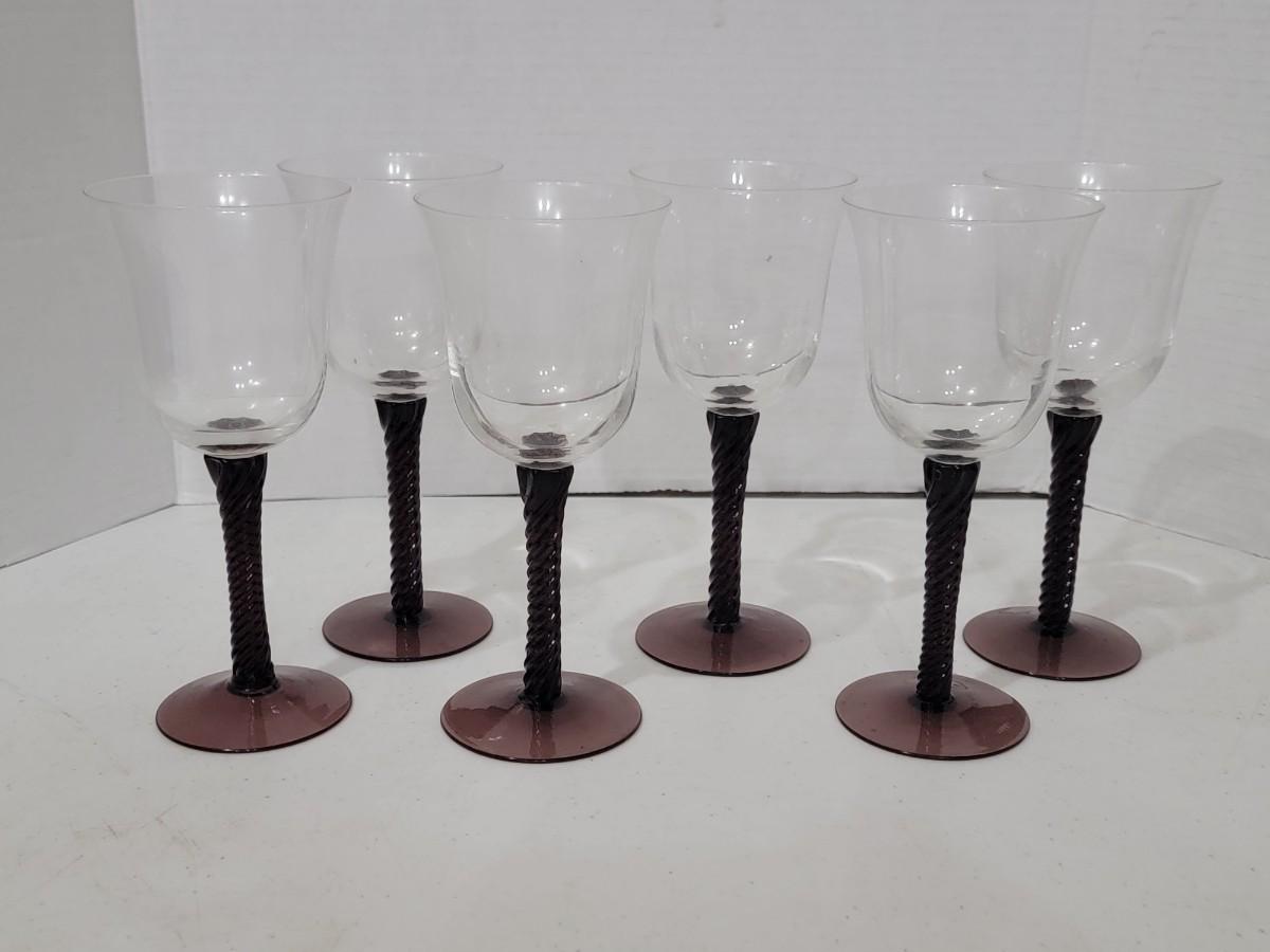 6 Purple Twisted Wine Glasses