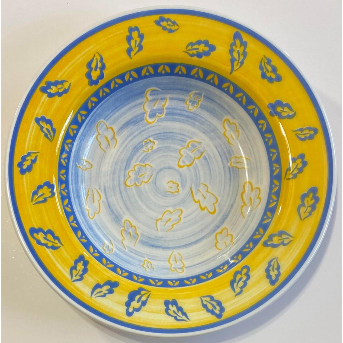 6 Quadrifoglio Blue & Yellow Leaf Pattern Bowls Made in Italy