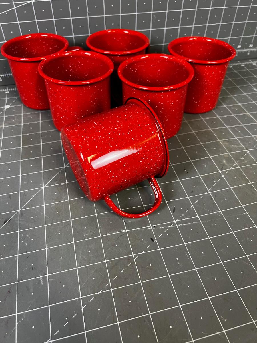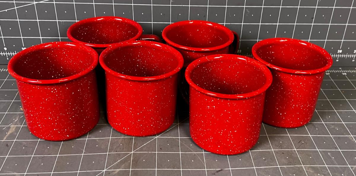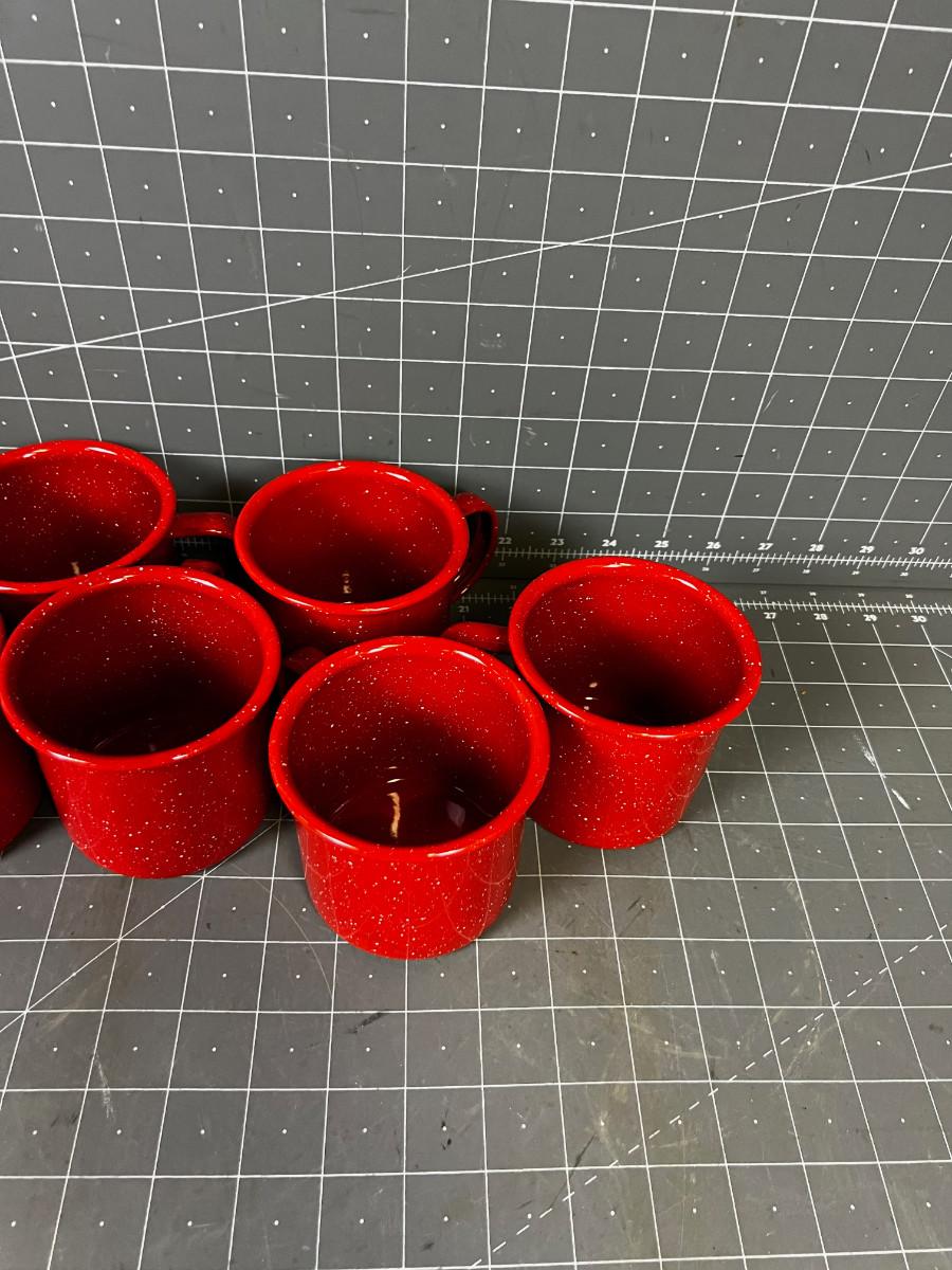 6 RED Enamel Coffee Cups for Camping or Cowboying