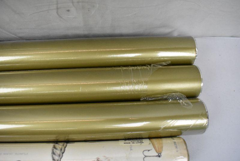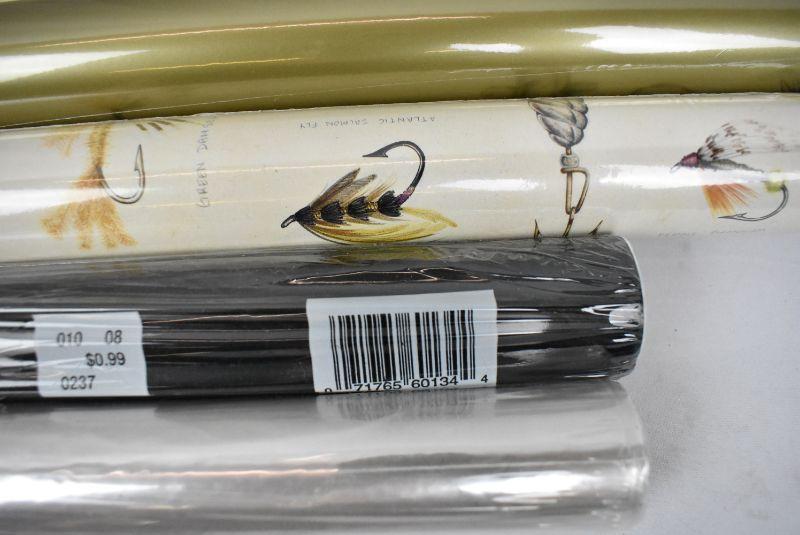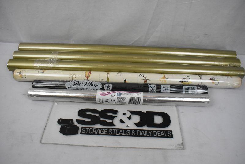 6 Rolls Gift Wrap. 3 Gold, 1 Fishing, Black Transparent, Clear - New