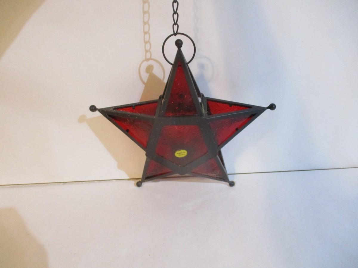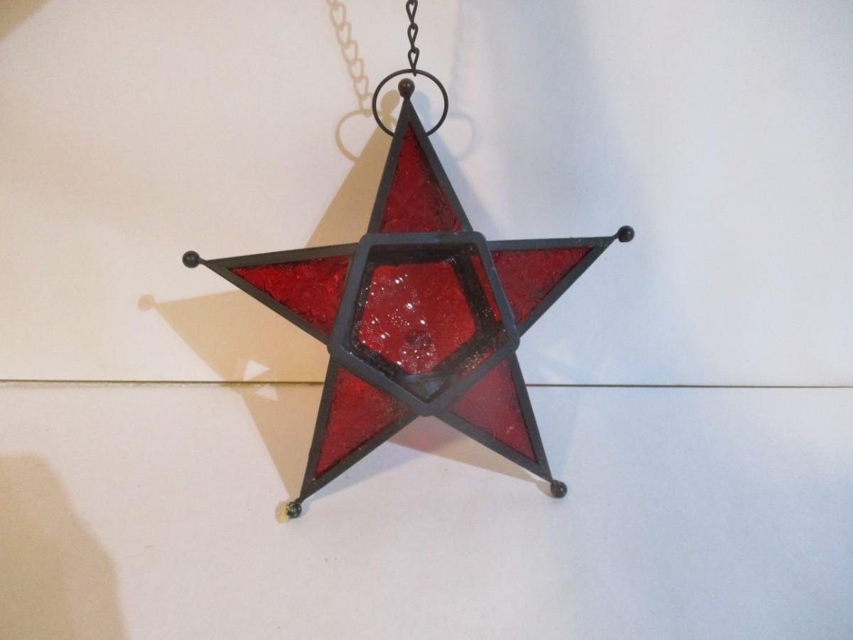 6 - Ruby Red Stained Glass Hanging 5-Point Star Light Candle Holders Lot 29