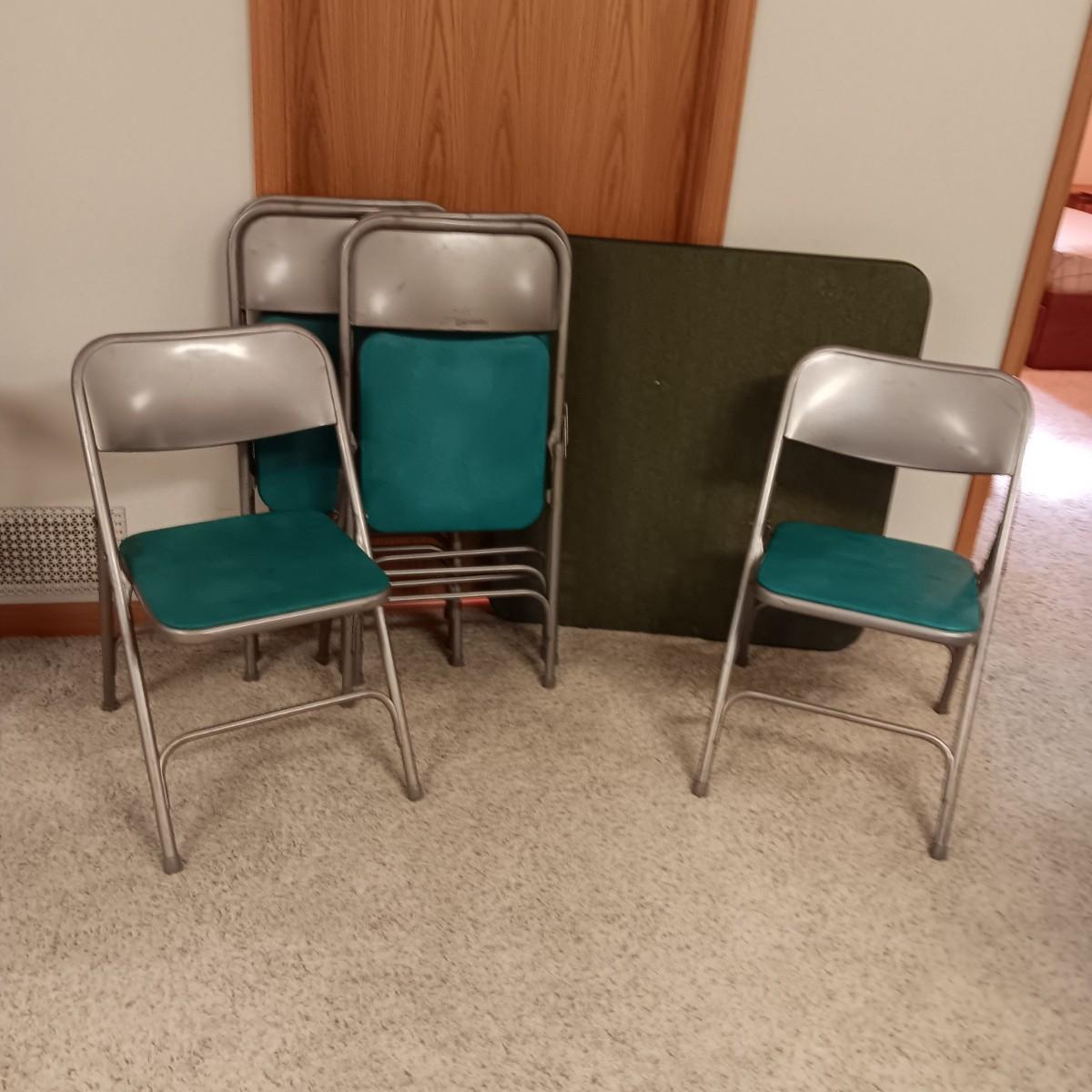 6 SAMSONITE FOLDING CHAIRS AND A CARD TABLE
