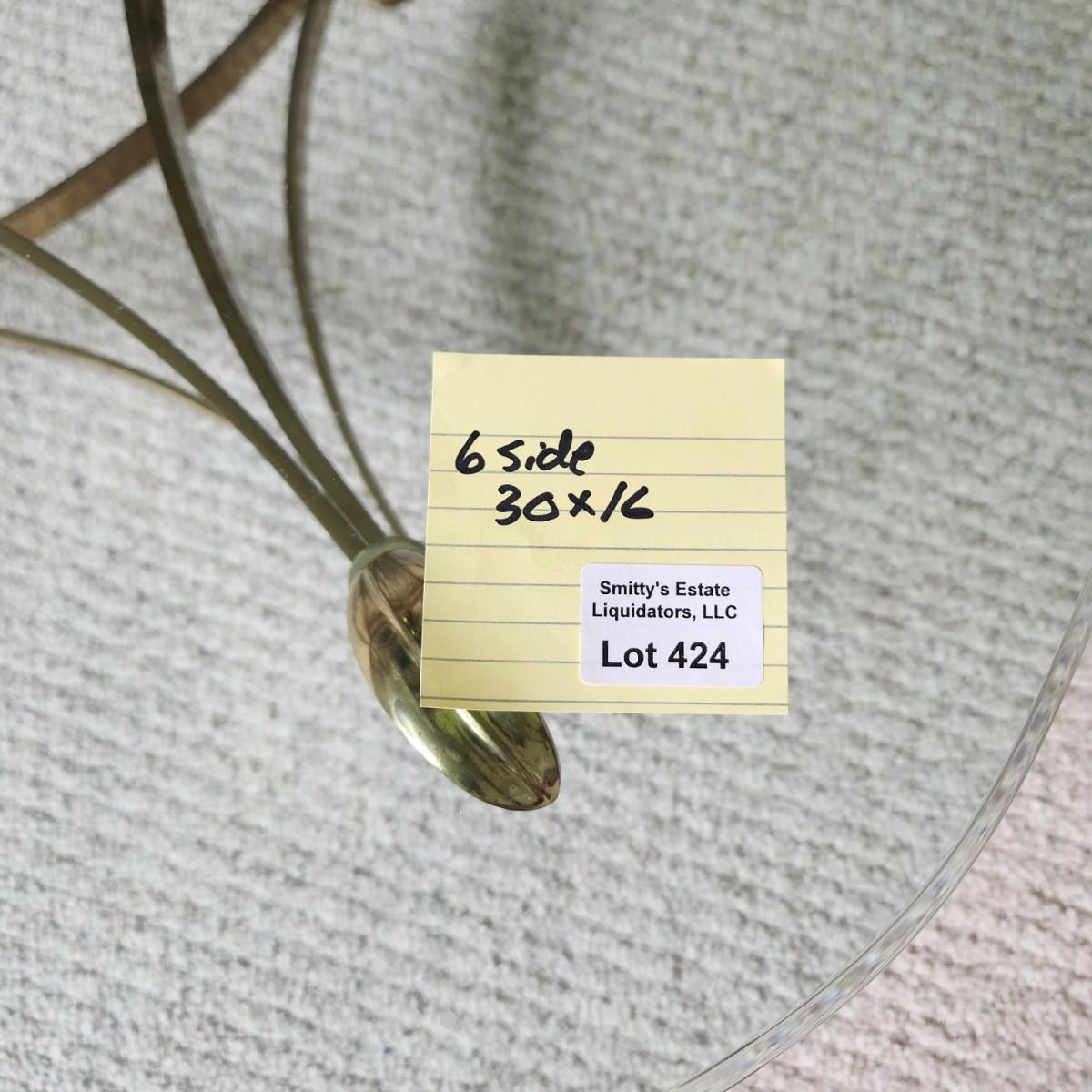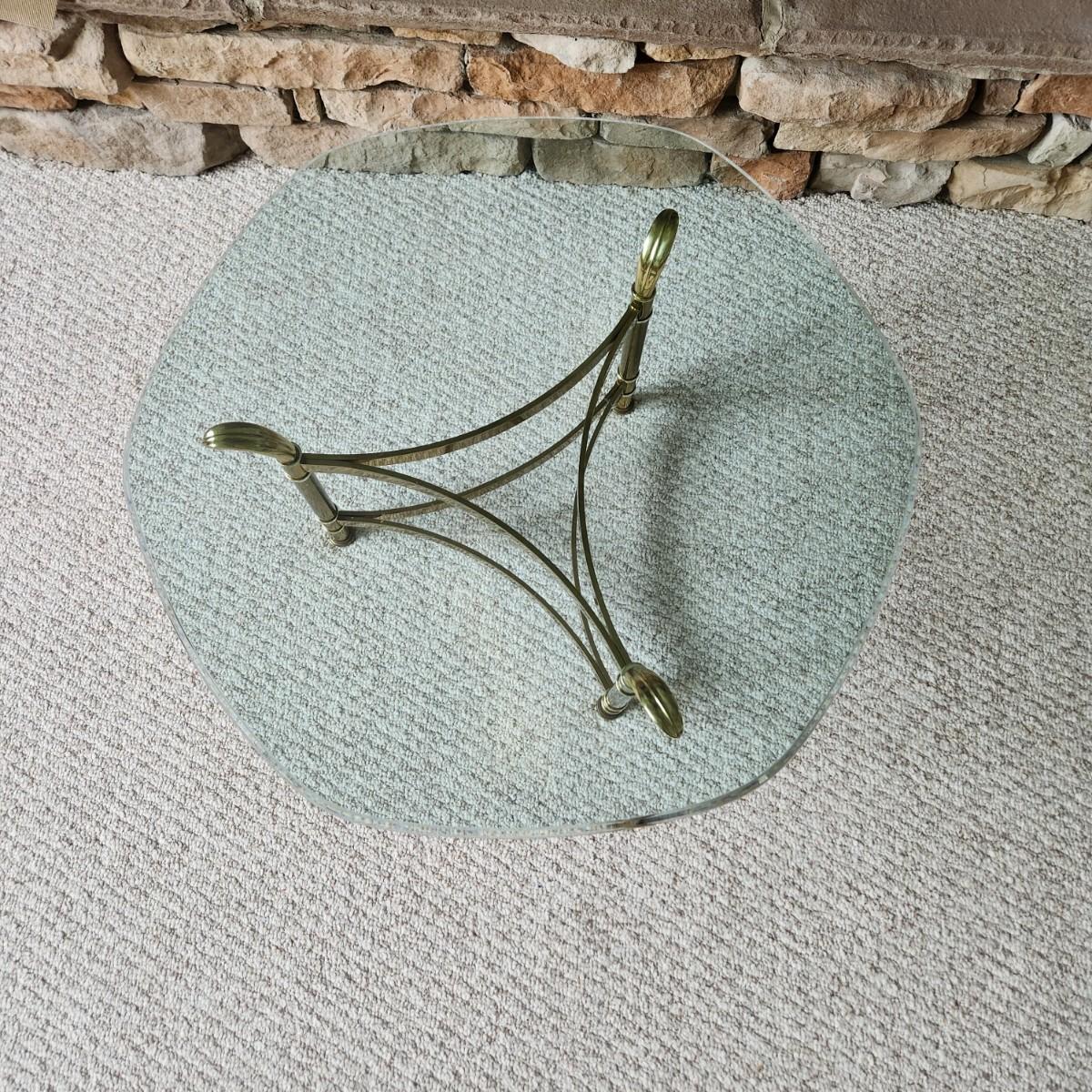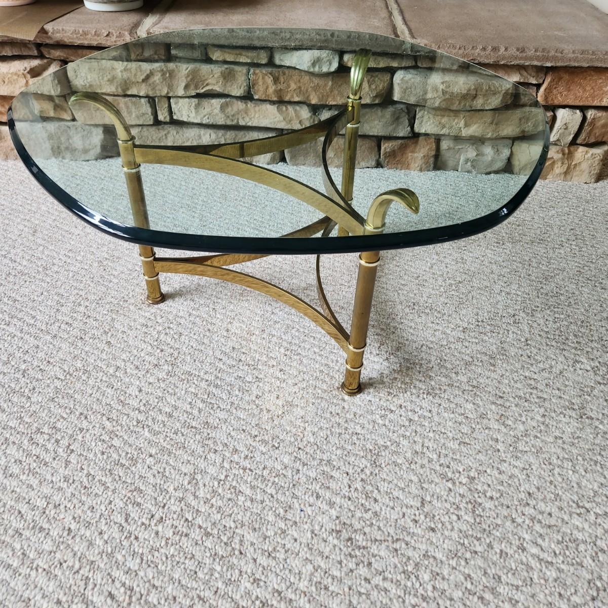 6 Sided Beveled Glass top Table on Brass Base 30x16