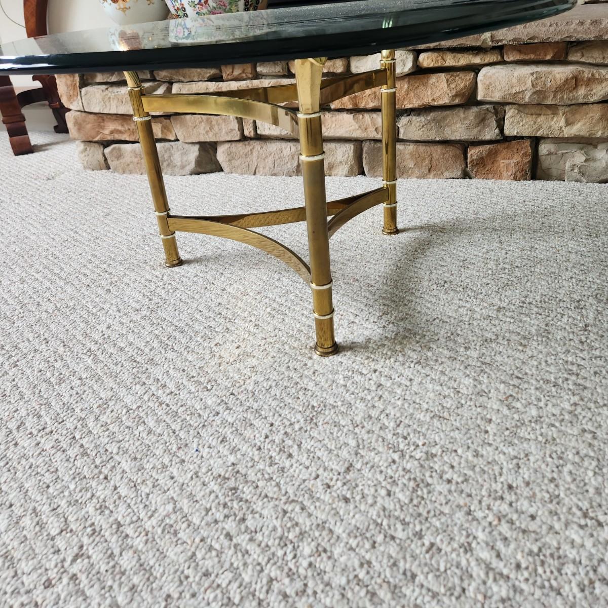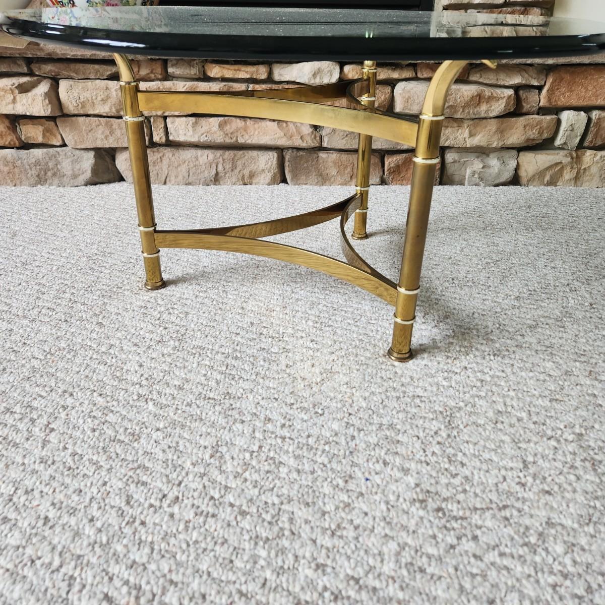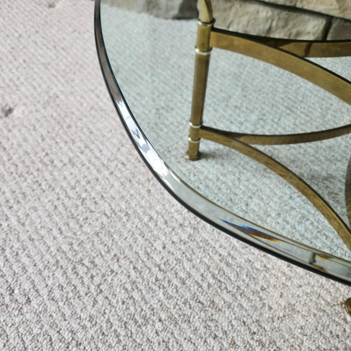 6 Sided Beveled Glass top Table on Brass Base 30x16