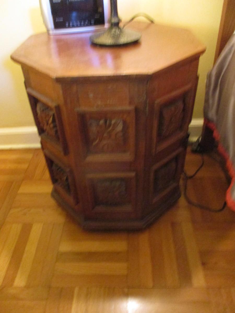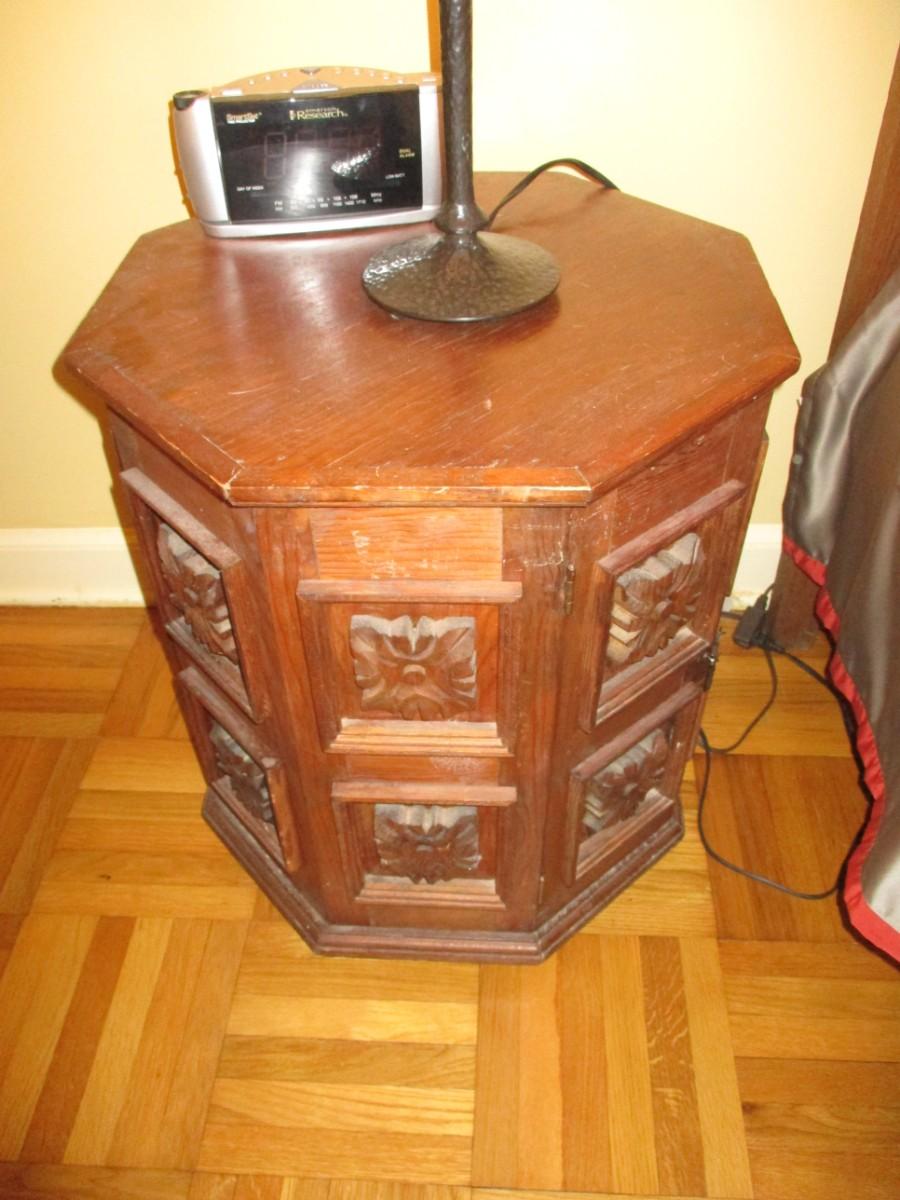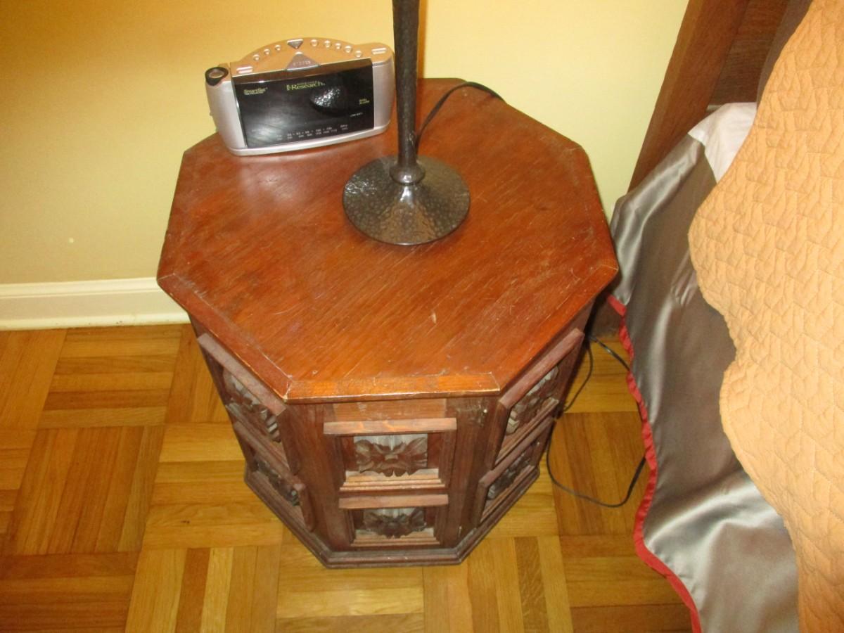 Hexagonal Wooden Faceted Design Side Table with Storage- Approx 23 1/2" High - D