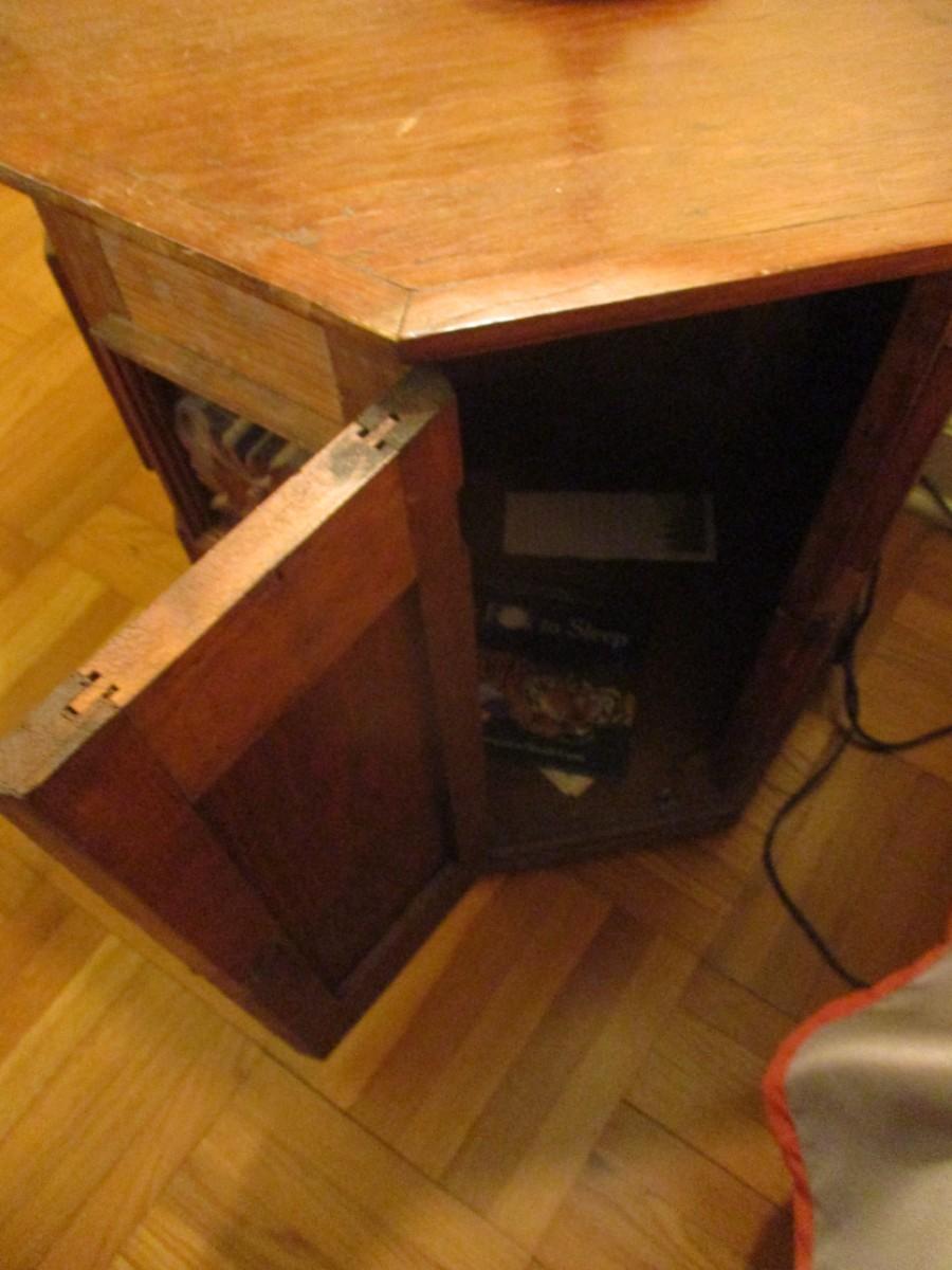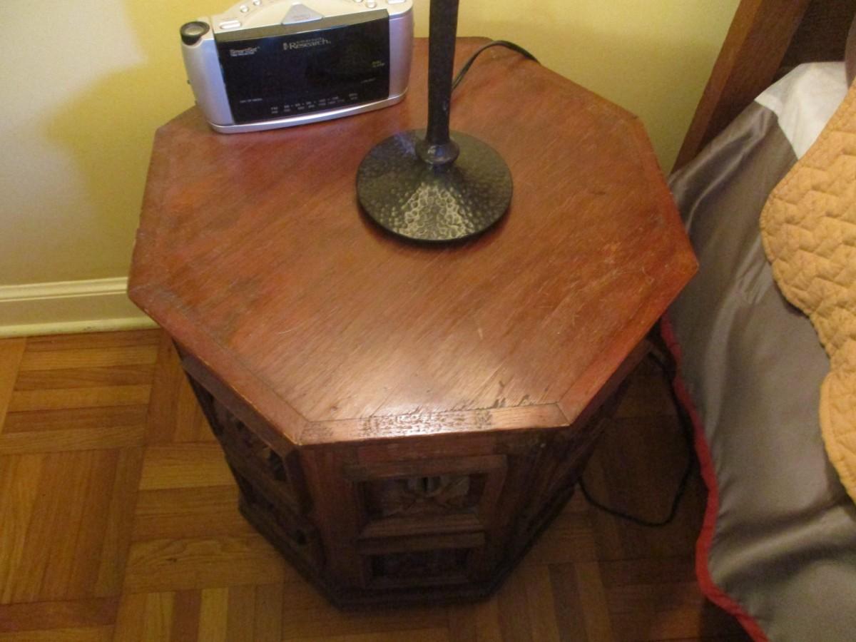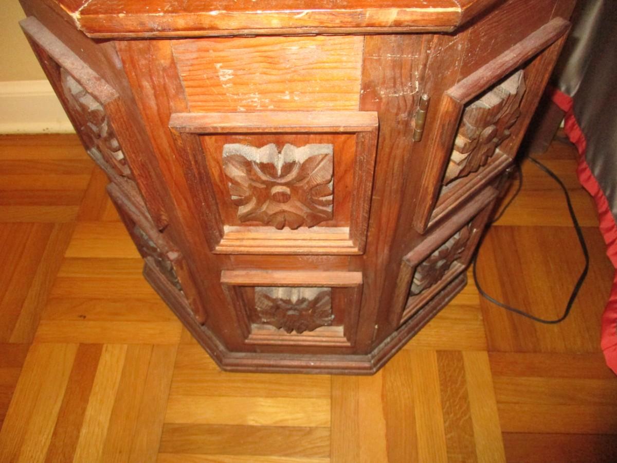 Hexagonal Wooden Faceted Design Side Table with Storage- Approx 23 1/2" High - D
