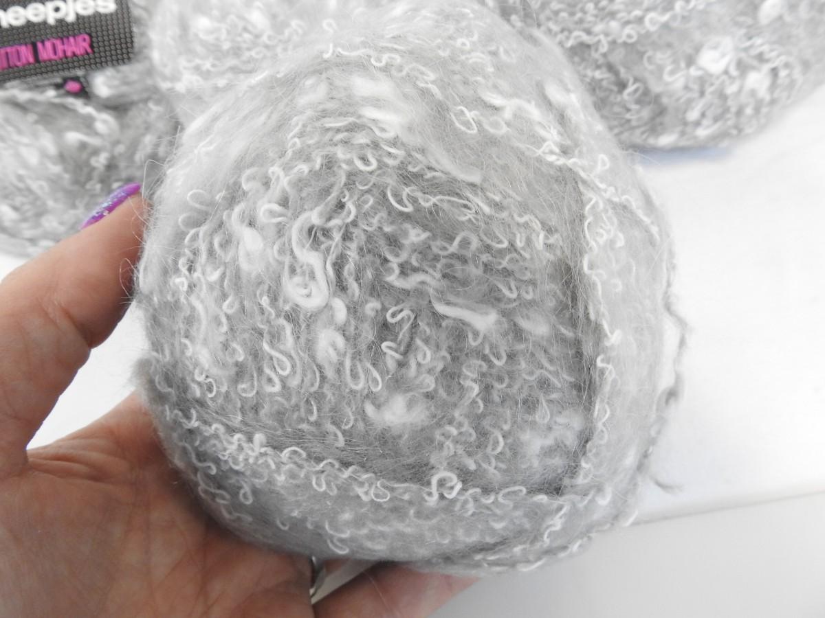 6 Skeins Cotton Mohair Gray & White Yarn by Sheepjes 50 g each- New