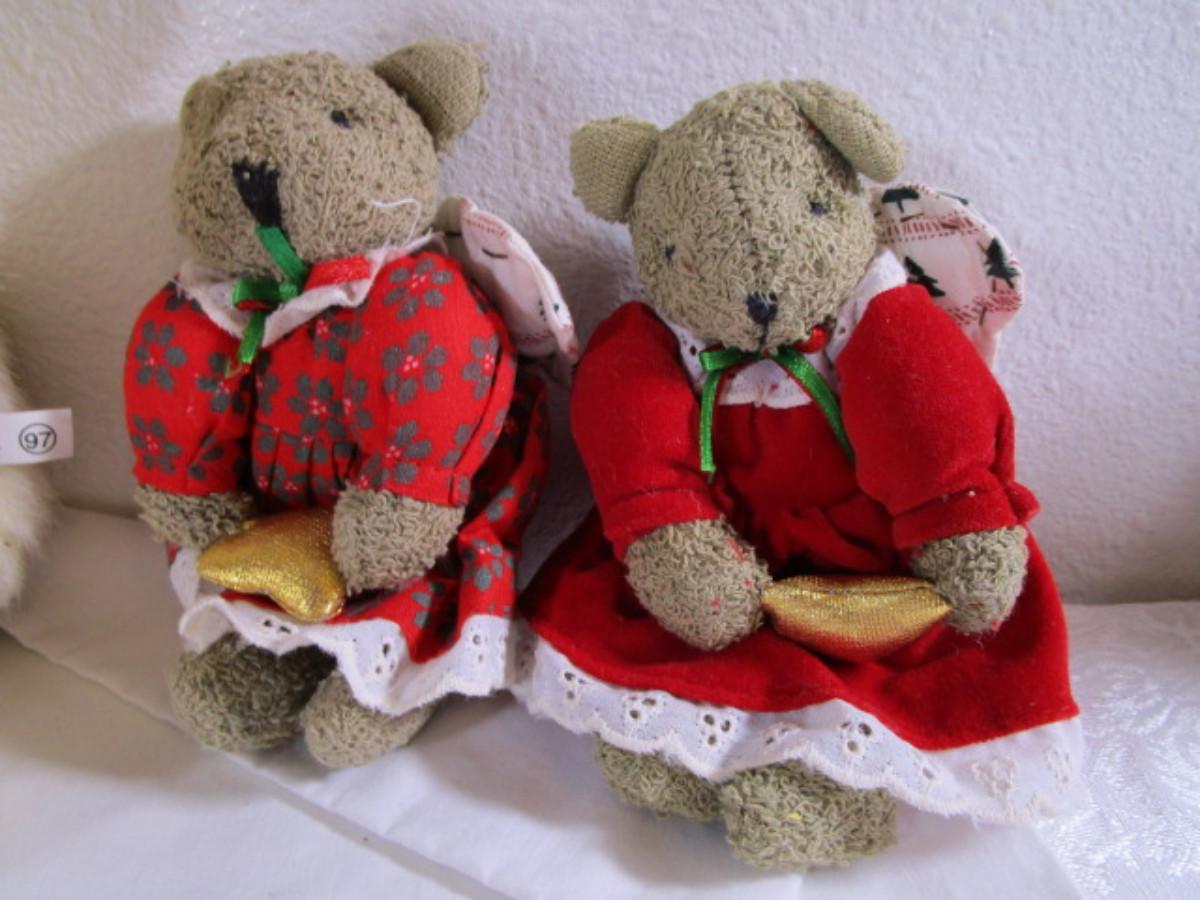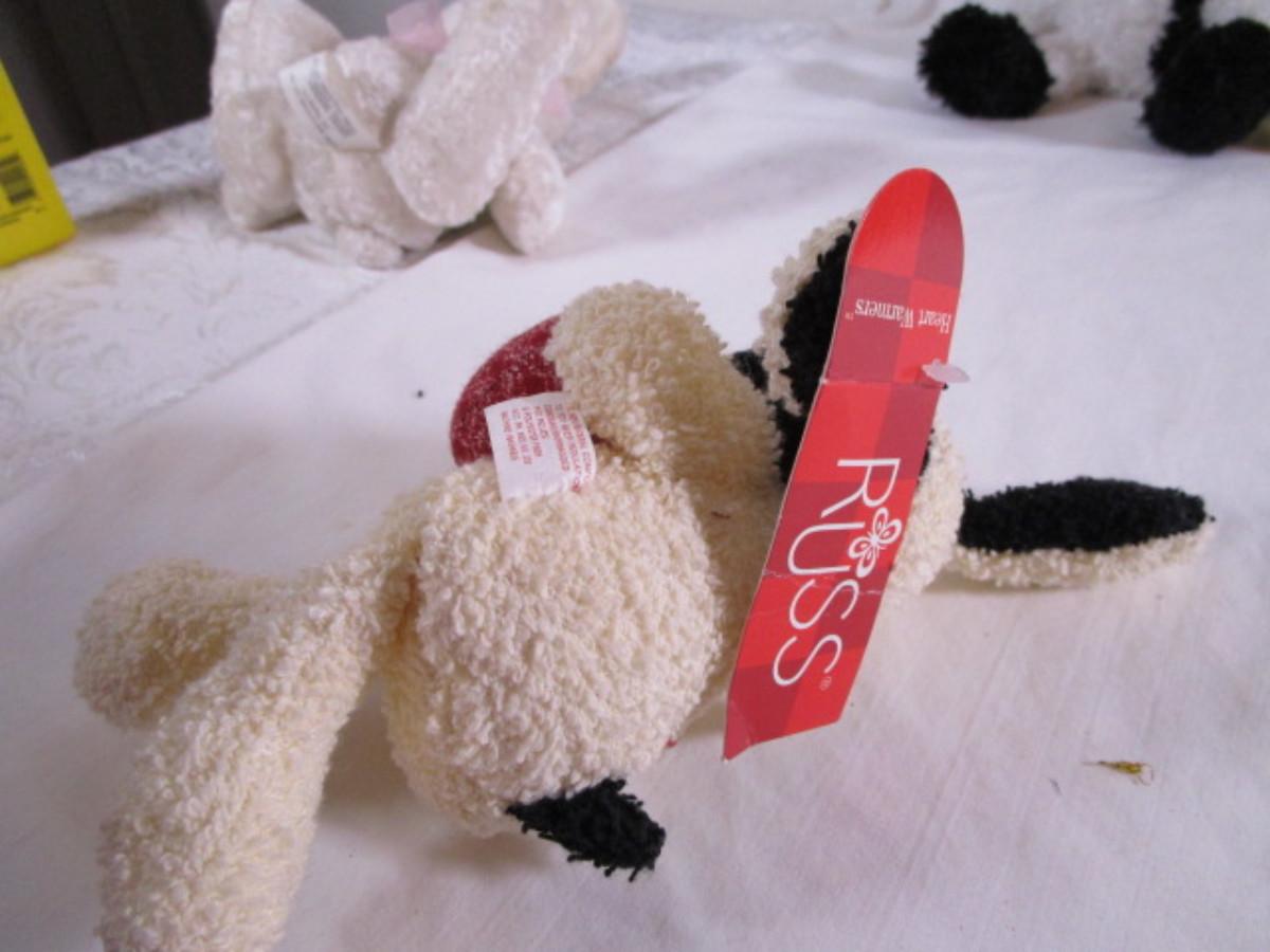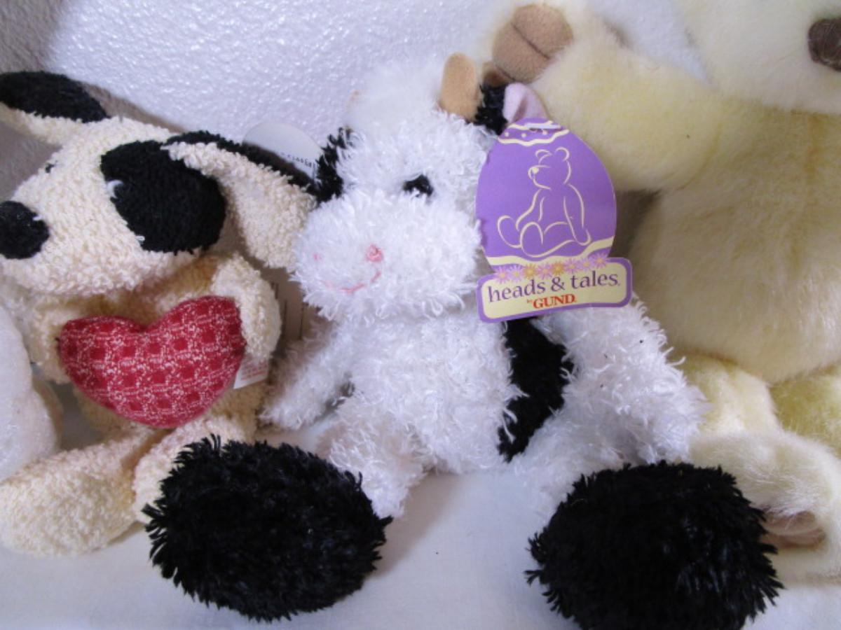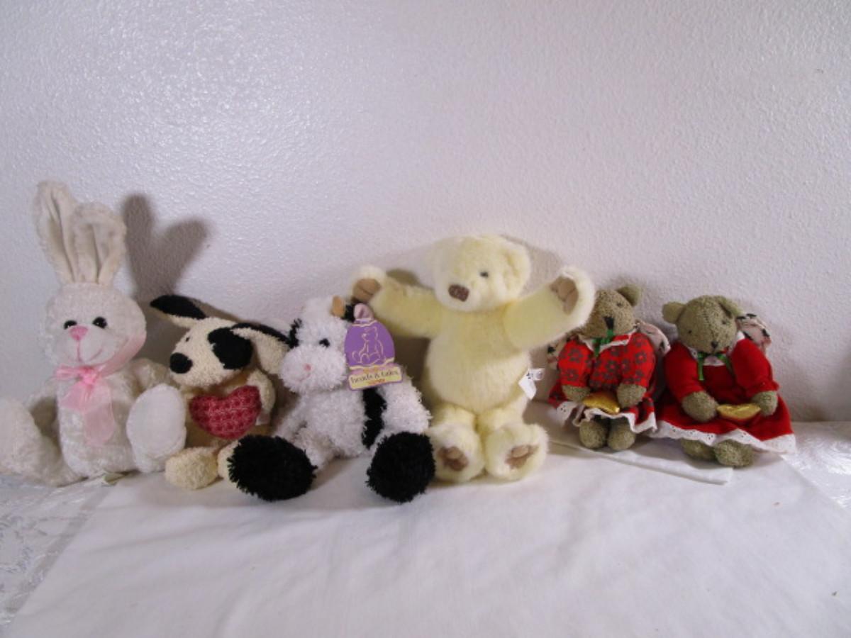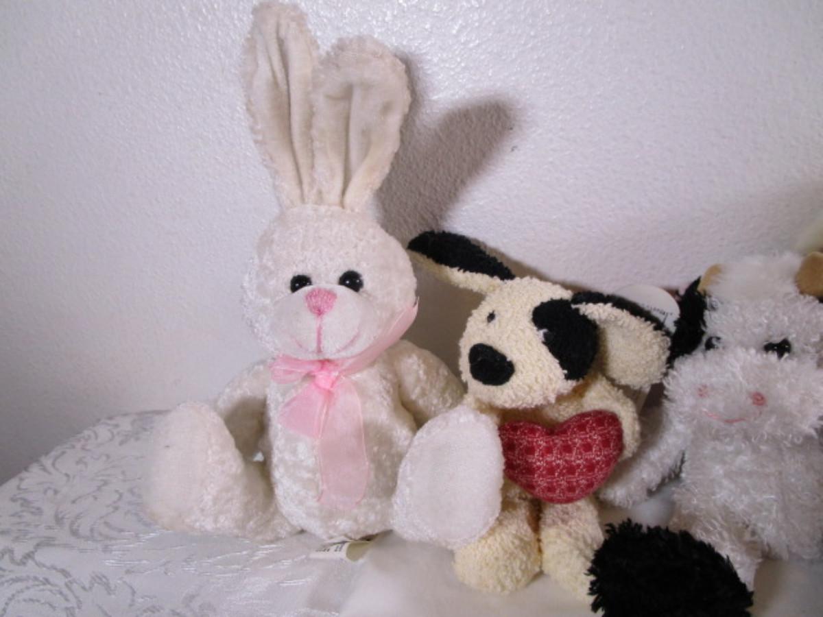 1 bunny,1 dog, 1 cow, 1 bear, 2 Christmas bears