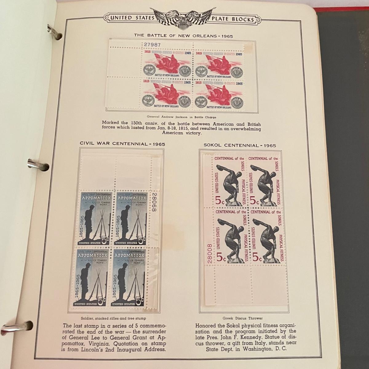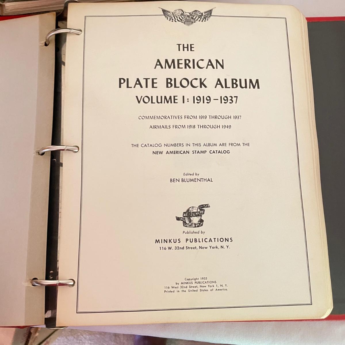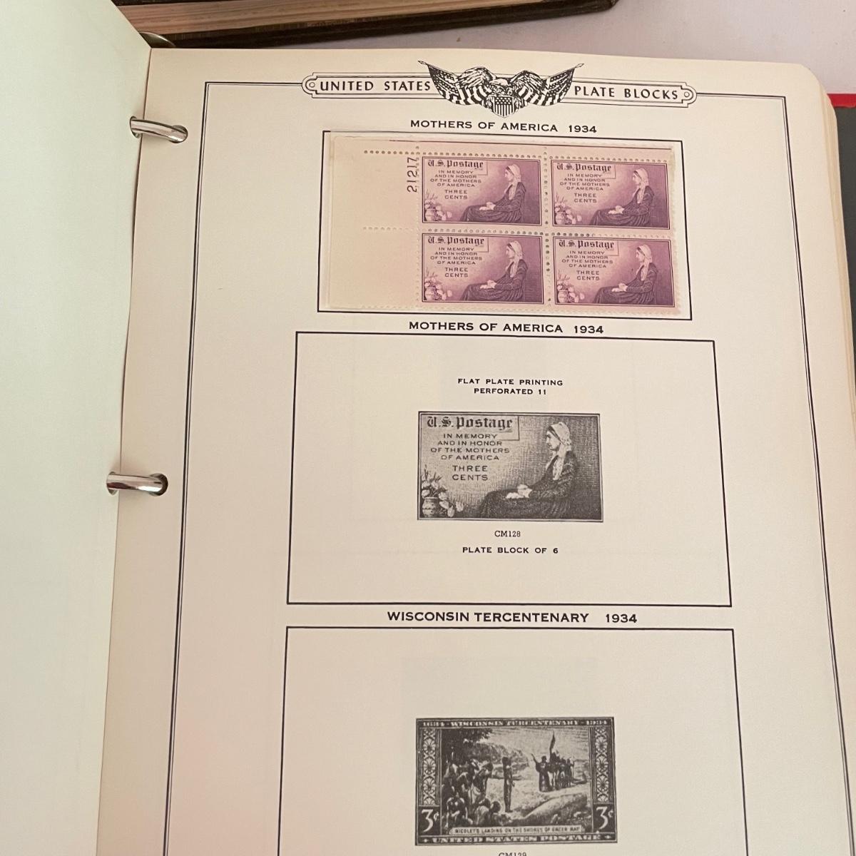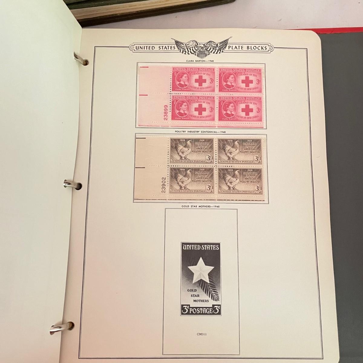 Six stamp collection albums. Most pages are for single stamps, but others have small plate blocks. The earliest pages (from the late 1800s) are stamp free. See images. Shipping available. Items are sold as-is. No returns or refunds. Please bid accordingly.