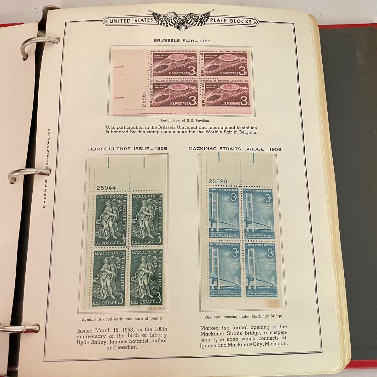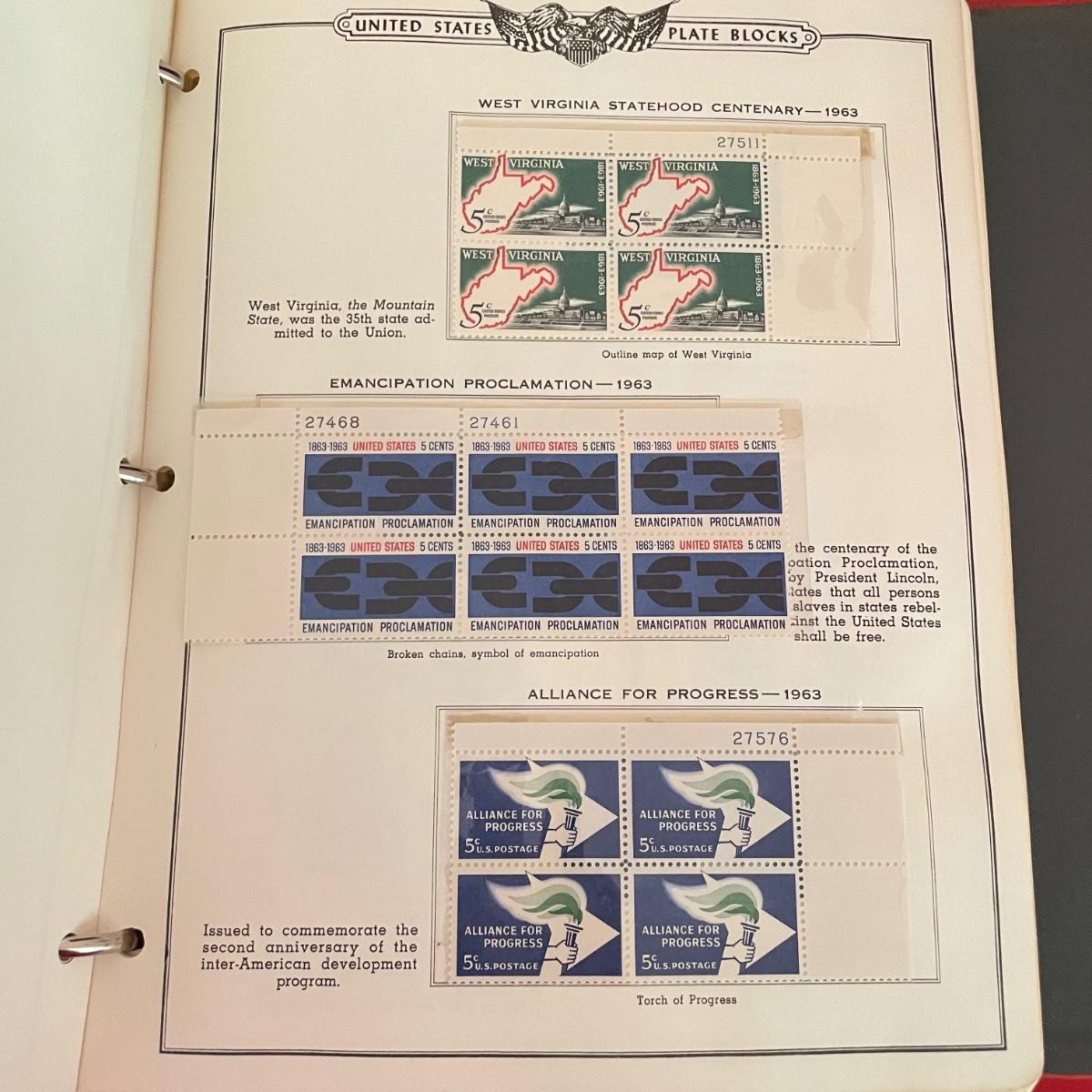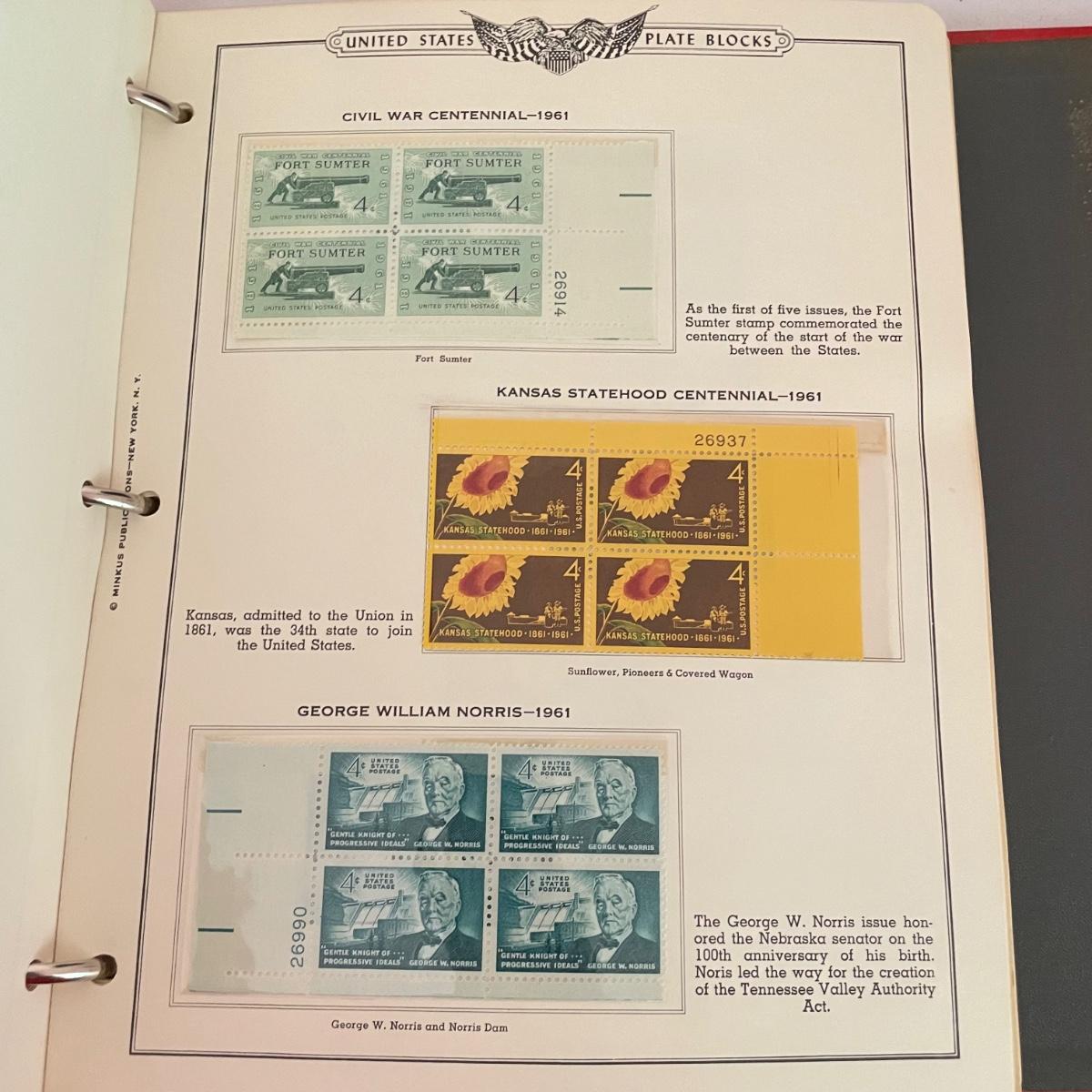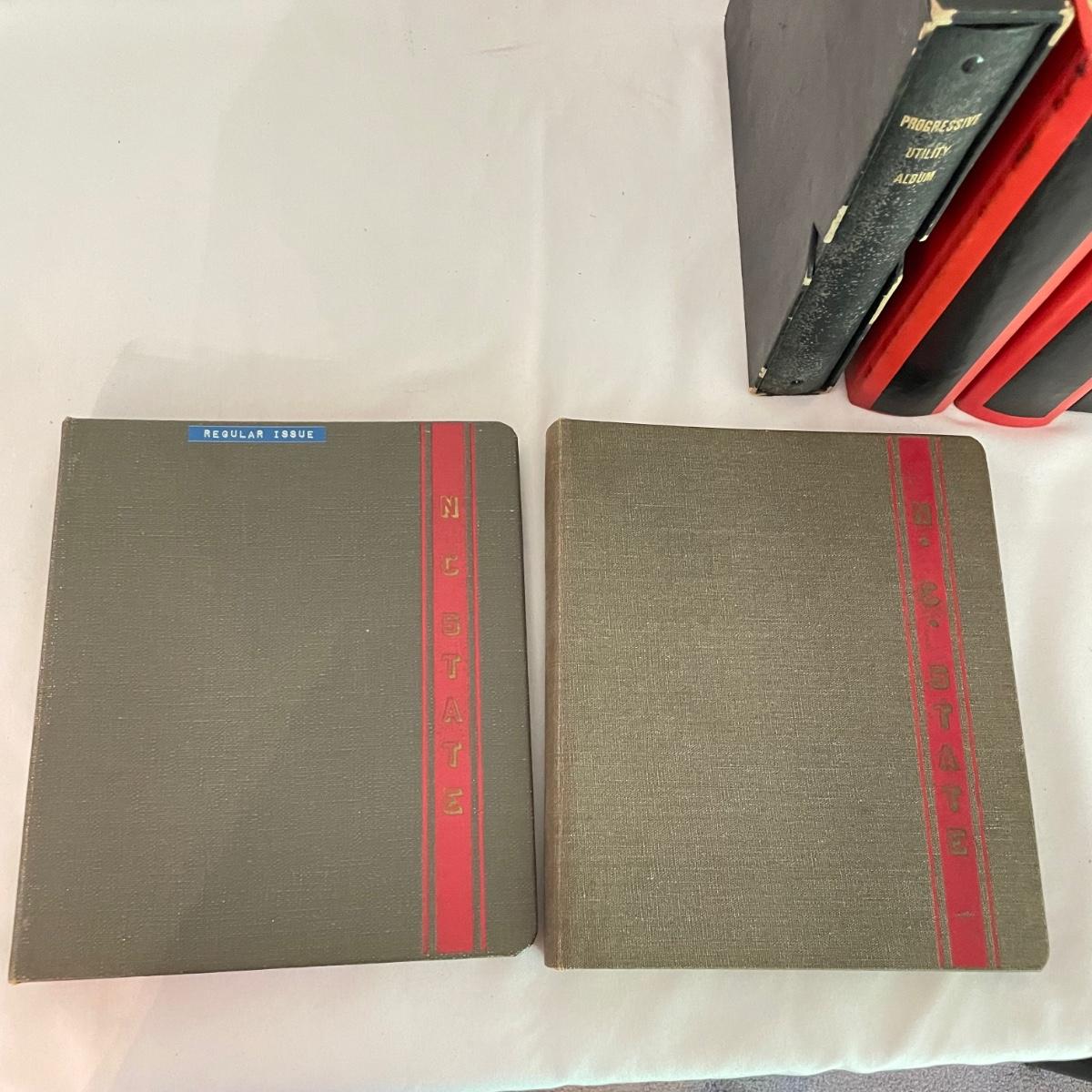 Six stamp collection albums. Most pages are for single stamps, but others have small plate blocks. The earliest pages (from the late 1800s) are stamp free. See images. Shipping available. Items are sold as-is. No returns or refunds. Please bid accordingly.