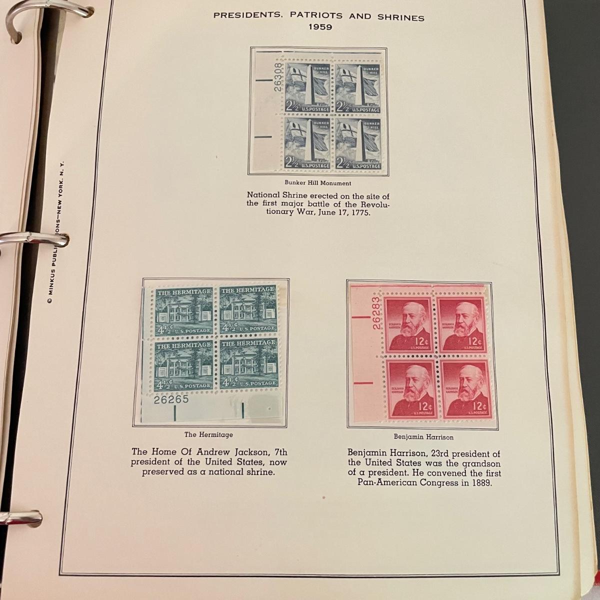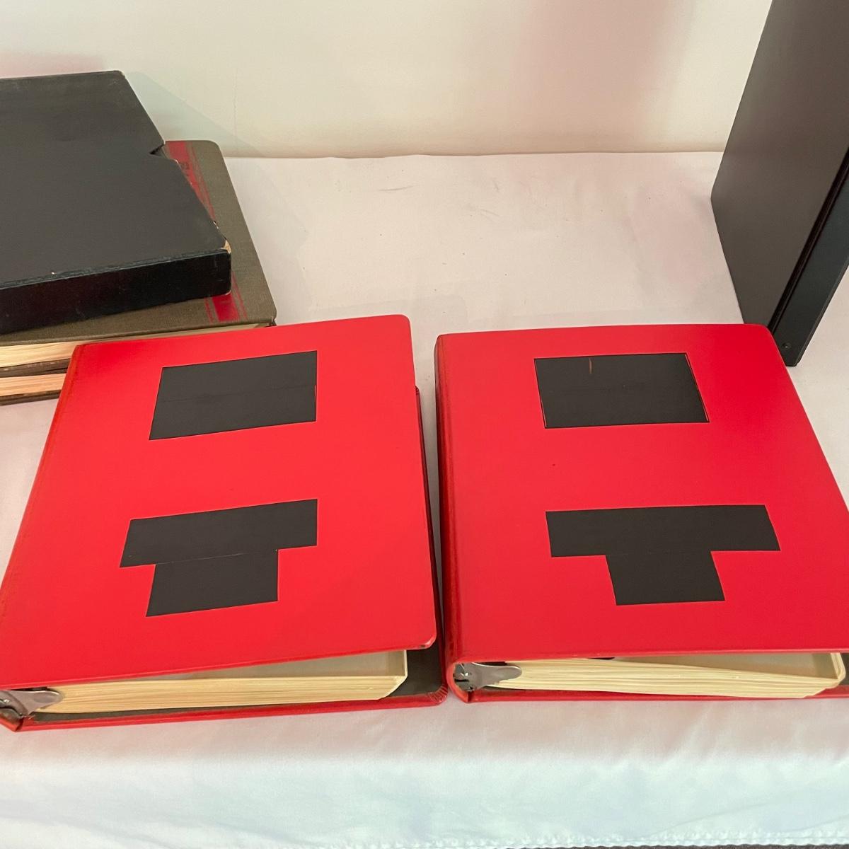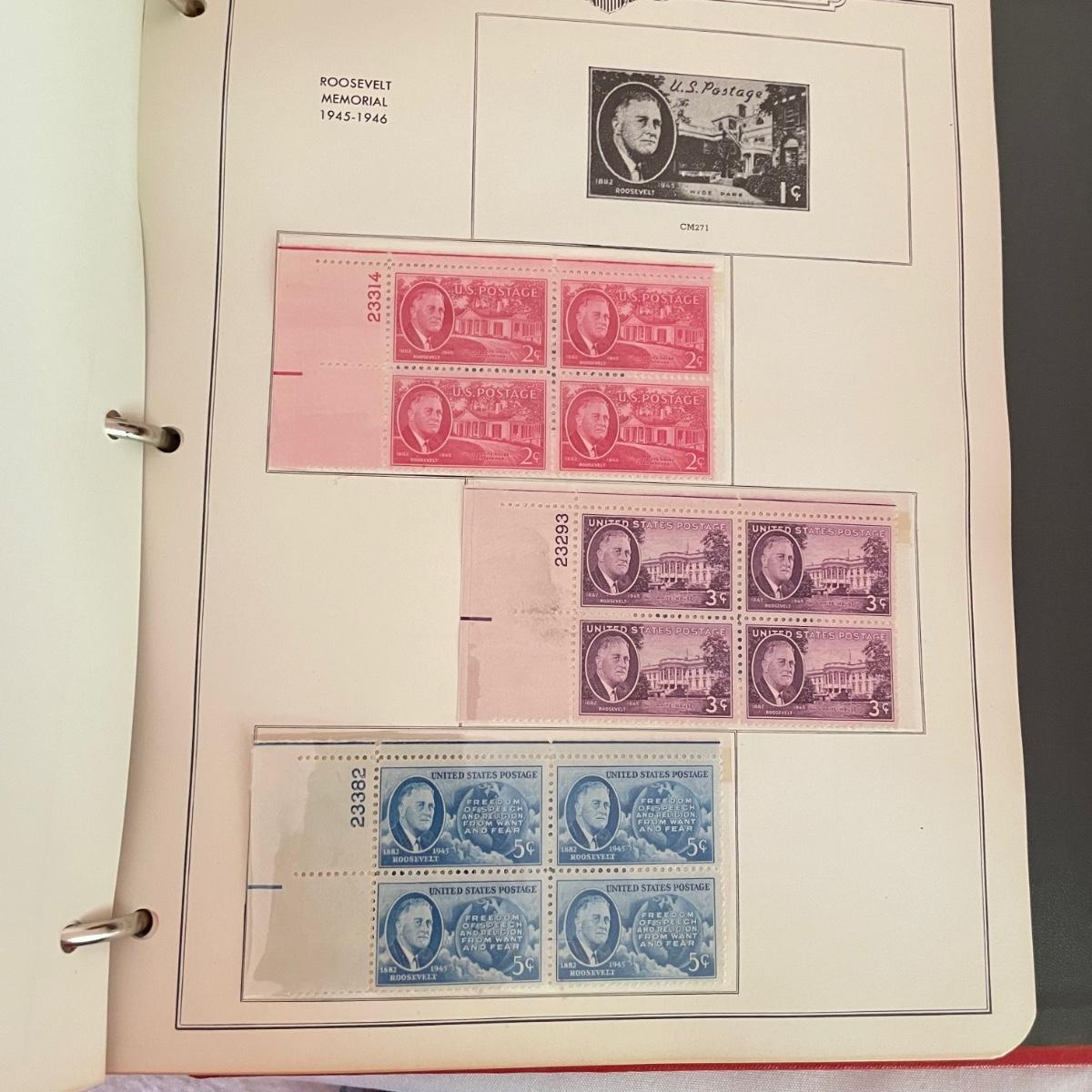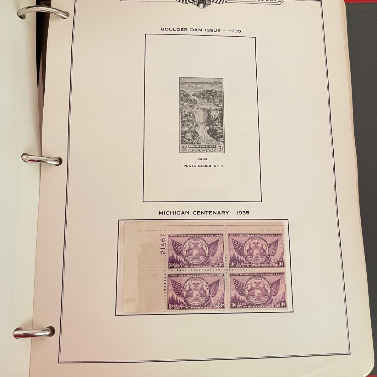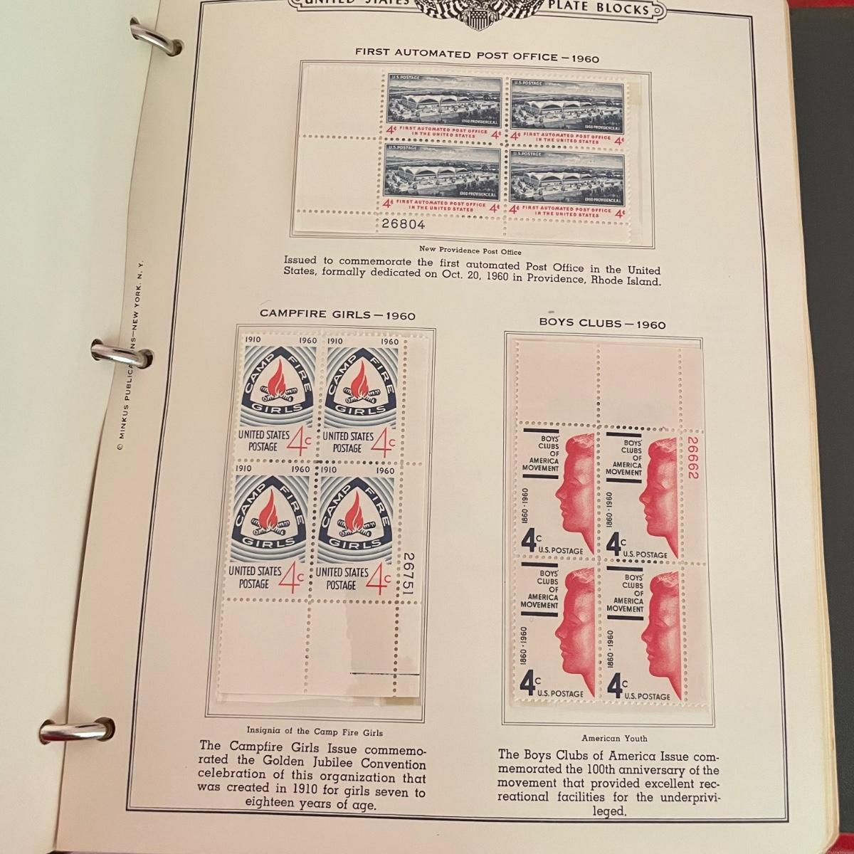 Six stamp collection albums. Most pages are for single stamps, but others have small plate blocks. The earliest pages (from the late 1800s) are stamp free. See images. Shipping available. Items are sold as-is. No returns or refunds. Please bid accordingly.