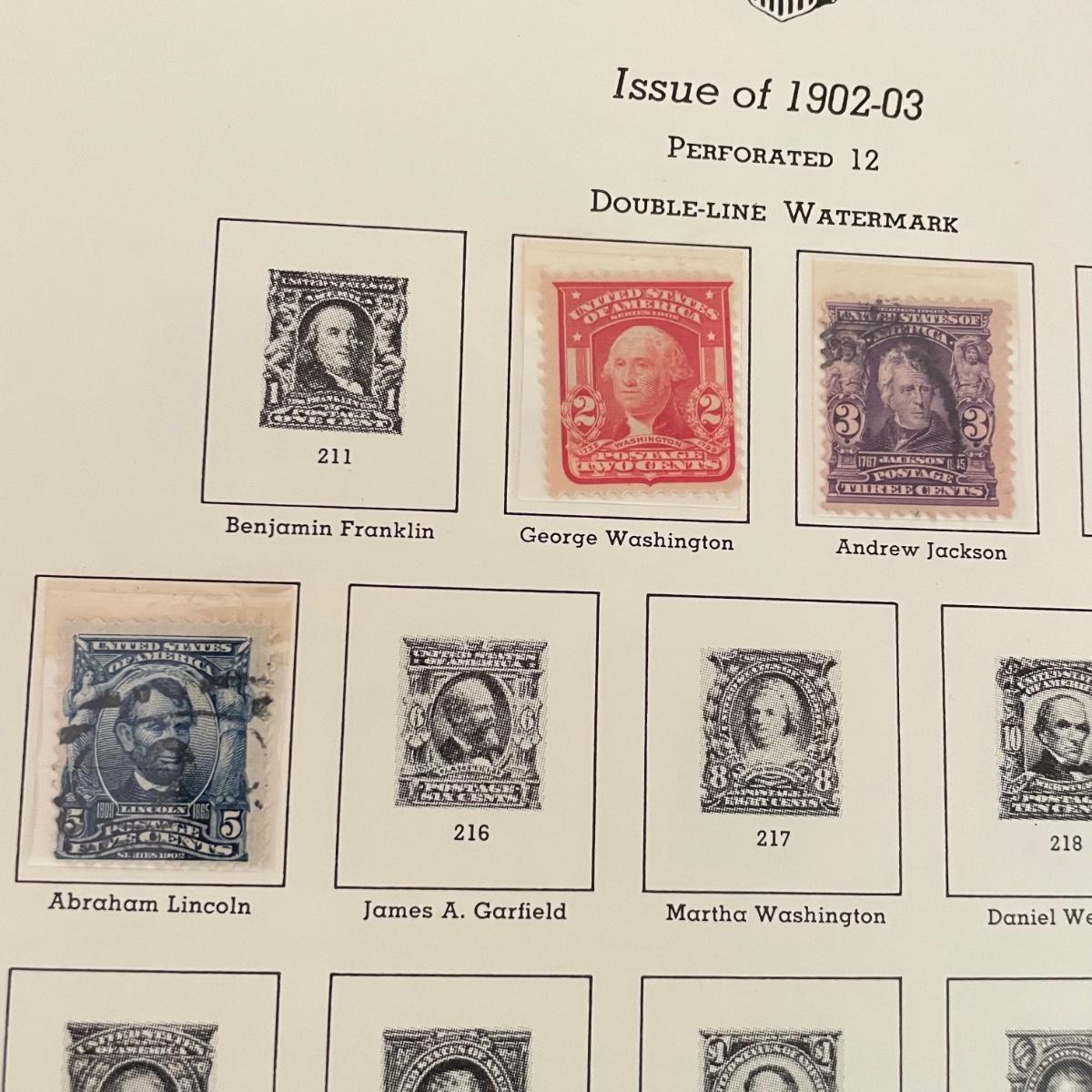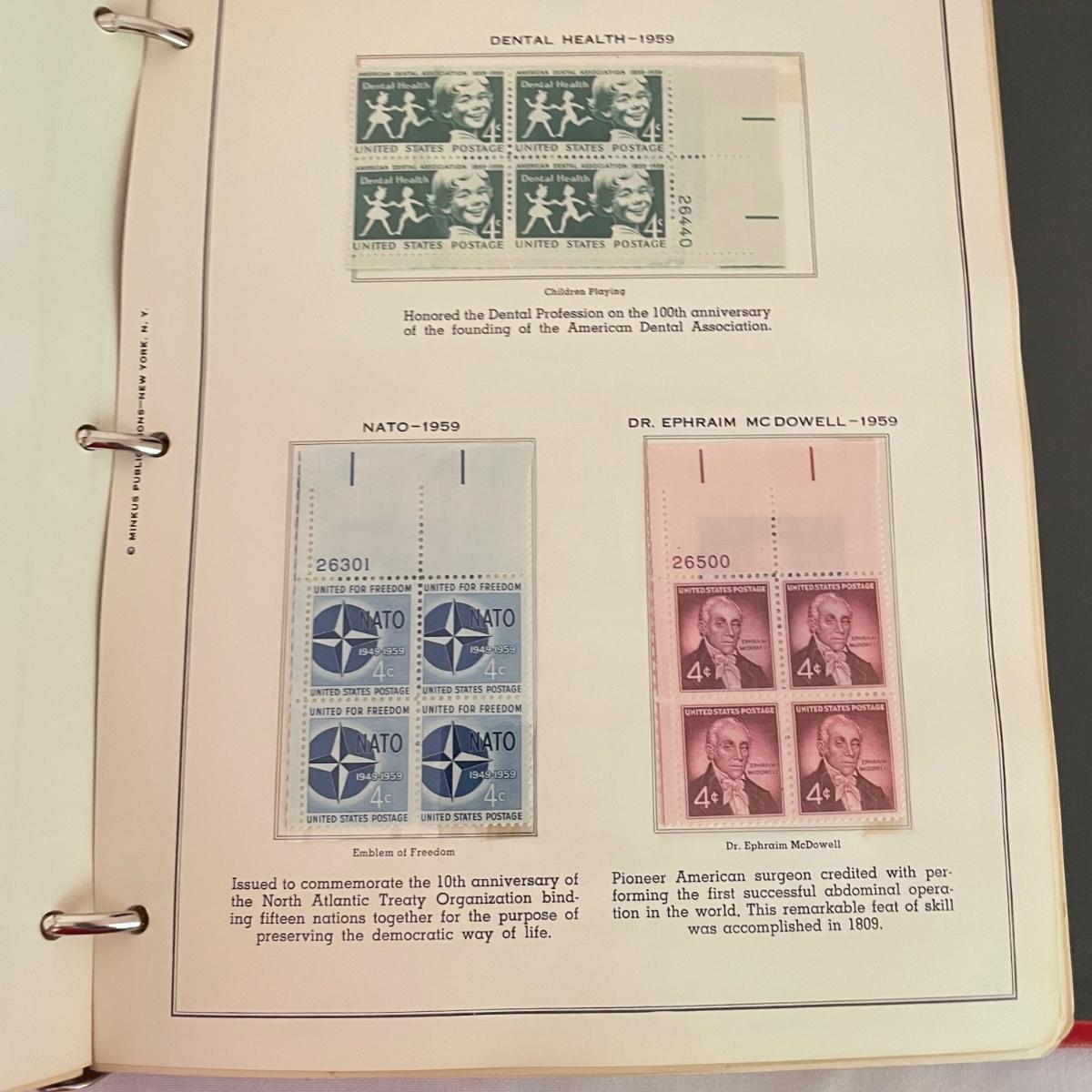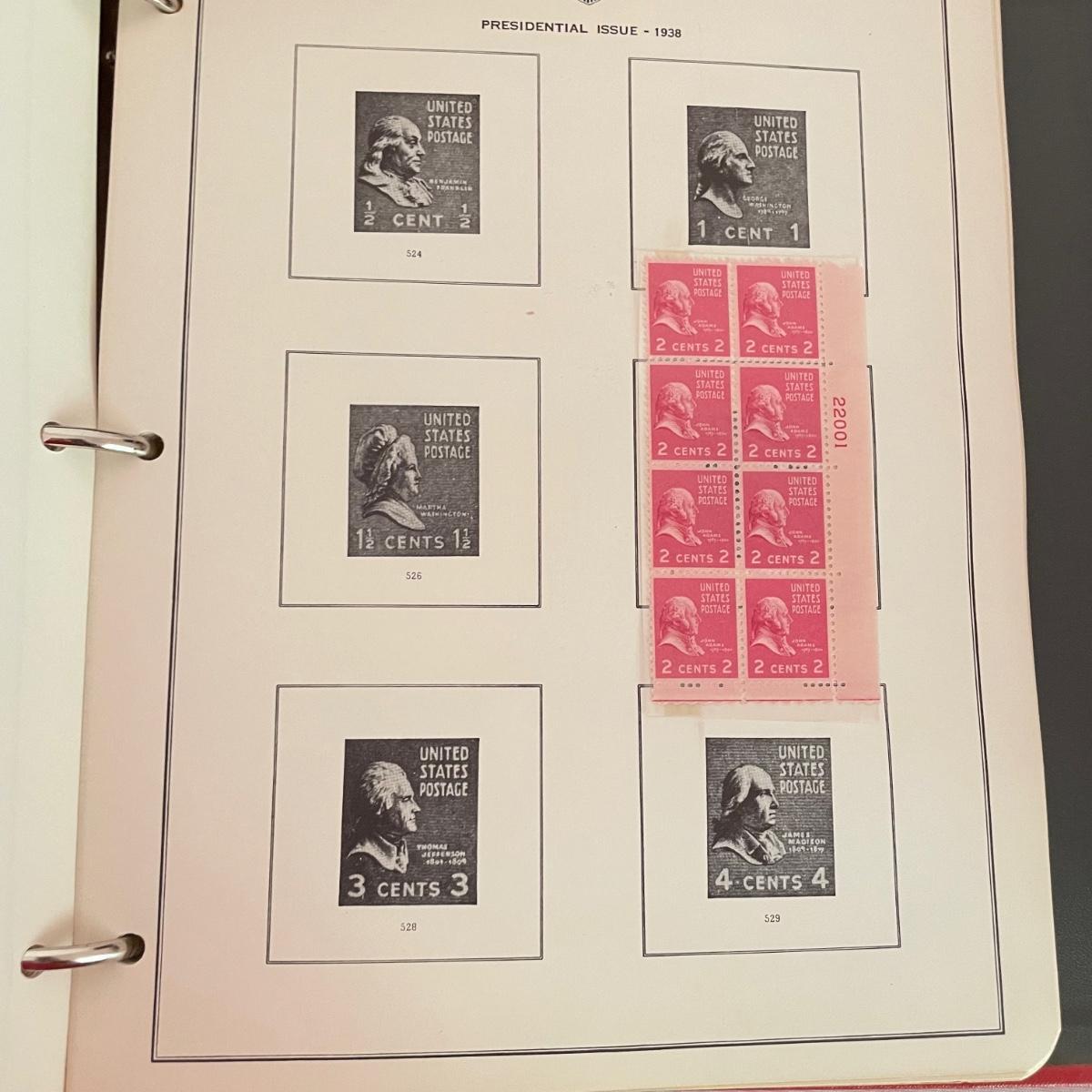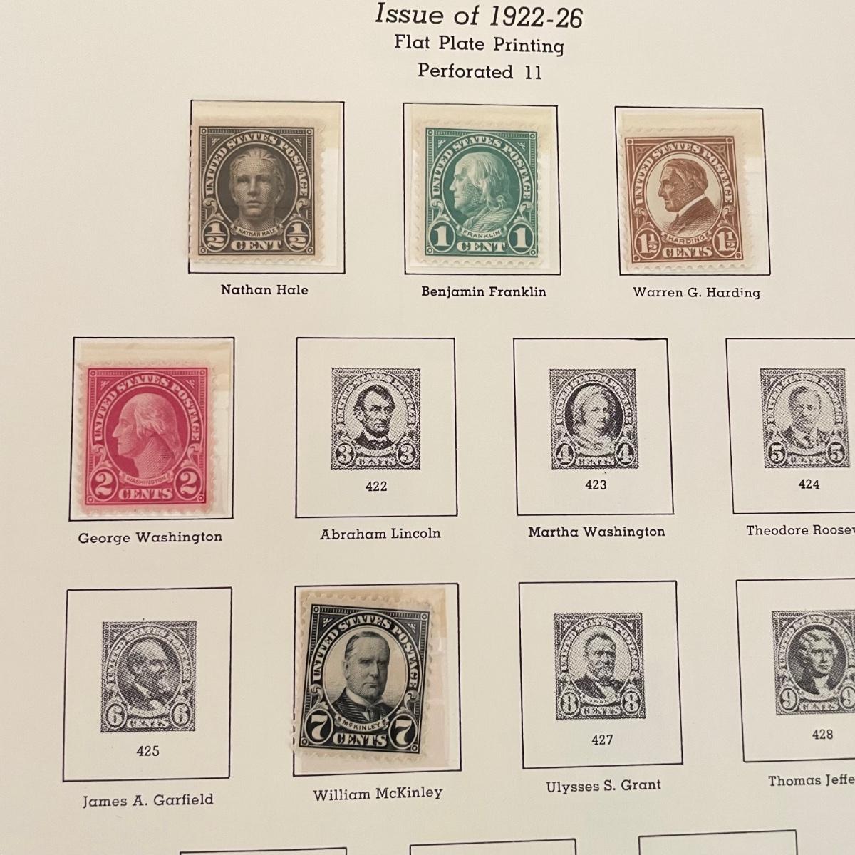 Six stamp collection albums. Most pages are for single stamps, but others have small plate blocks. The earliest pages (from the late 1800s) are stamp free. See images. Shipping available. Items are sold as-is. No returns or refunds. Please bid accordingly.