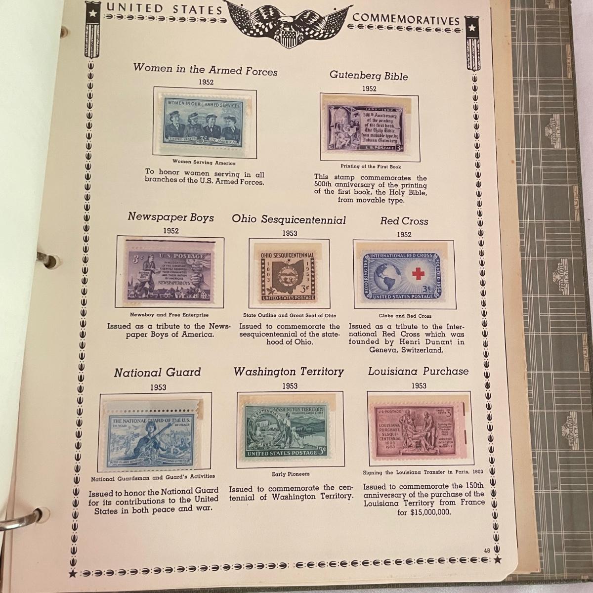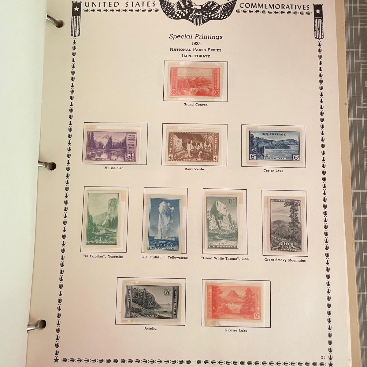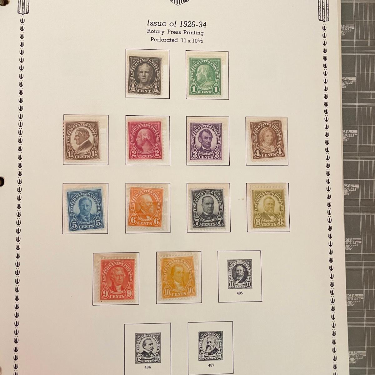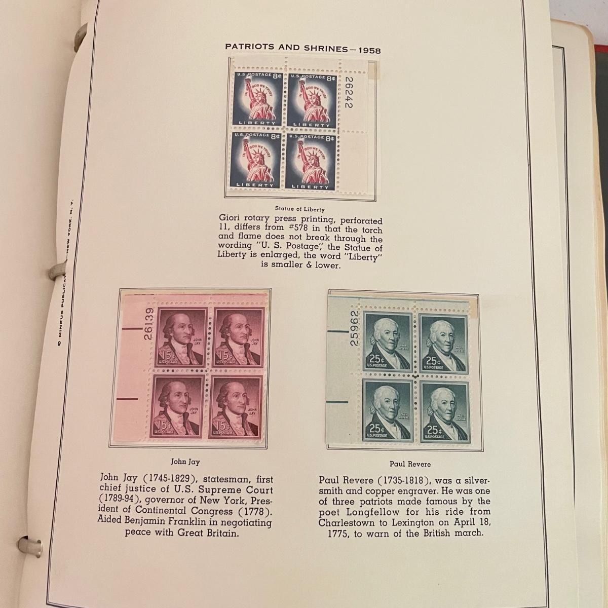 Six stamp collection albums. Most pages are for single stamps, but others have small plate blocks. The earliest pages (from the late 1800s) are stamp free. See images. Shipping available. Items are sold as-is. No returns or refunds. Please bid accordingly.
