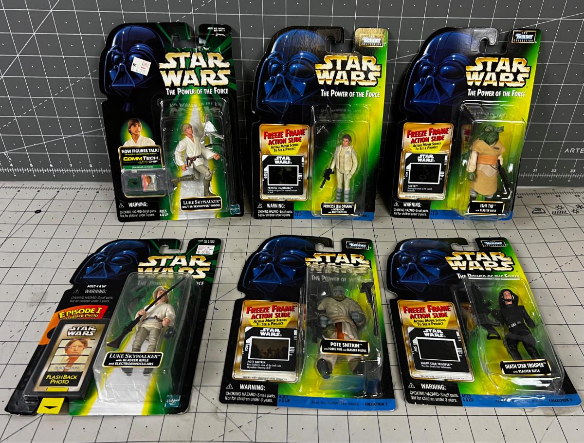 6 Star Wars Action Figures NEW on the Card. Power of The Force