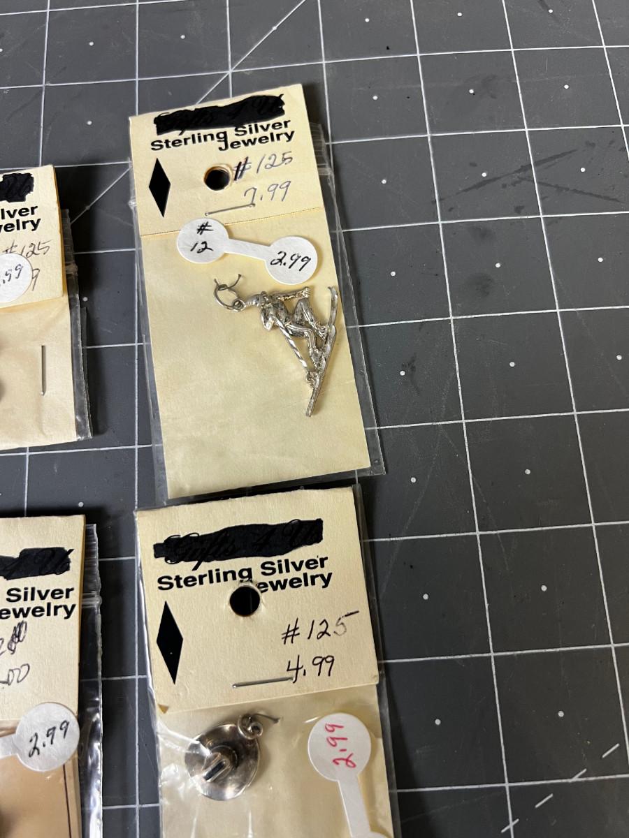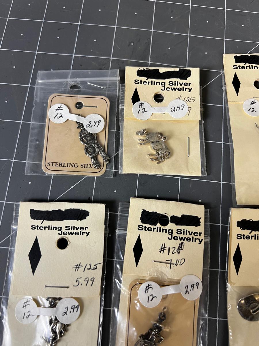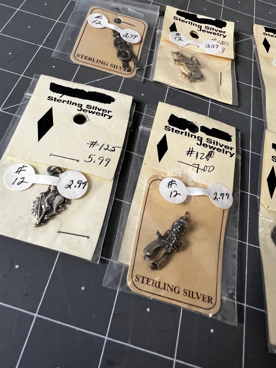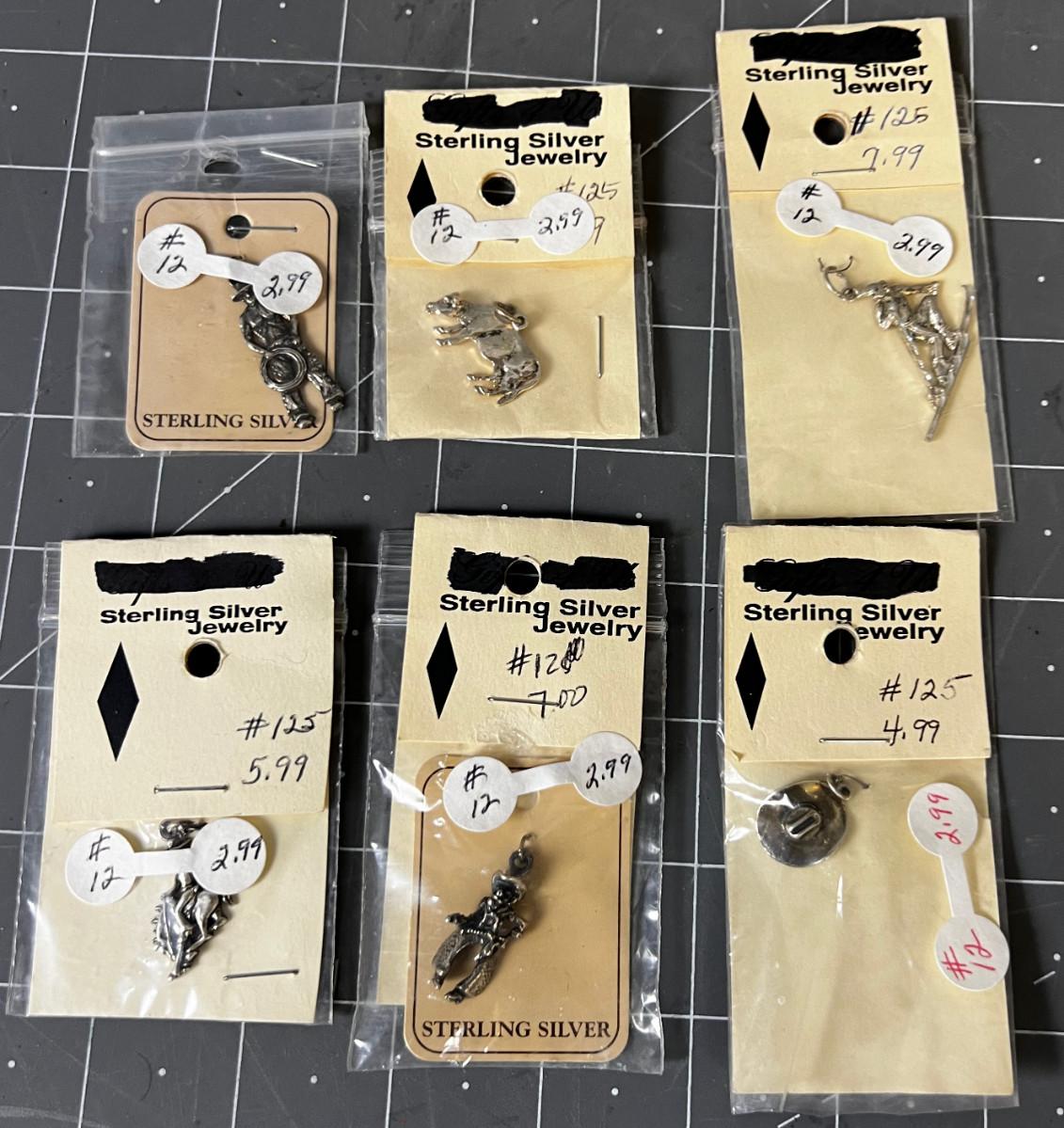 6 Sterling Silver Charms: Skier, Cowboys, Bronco