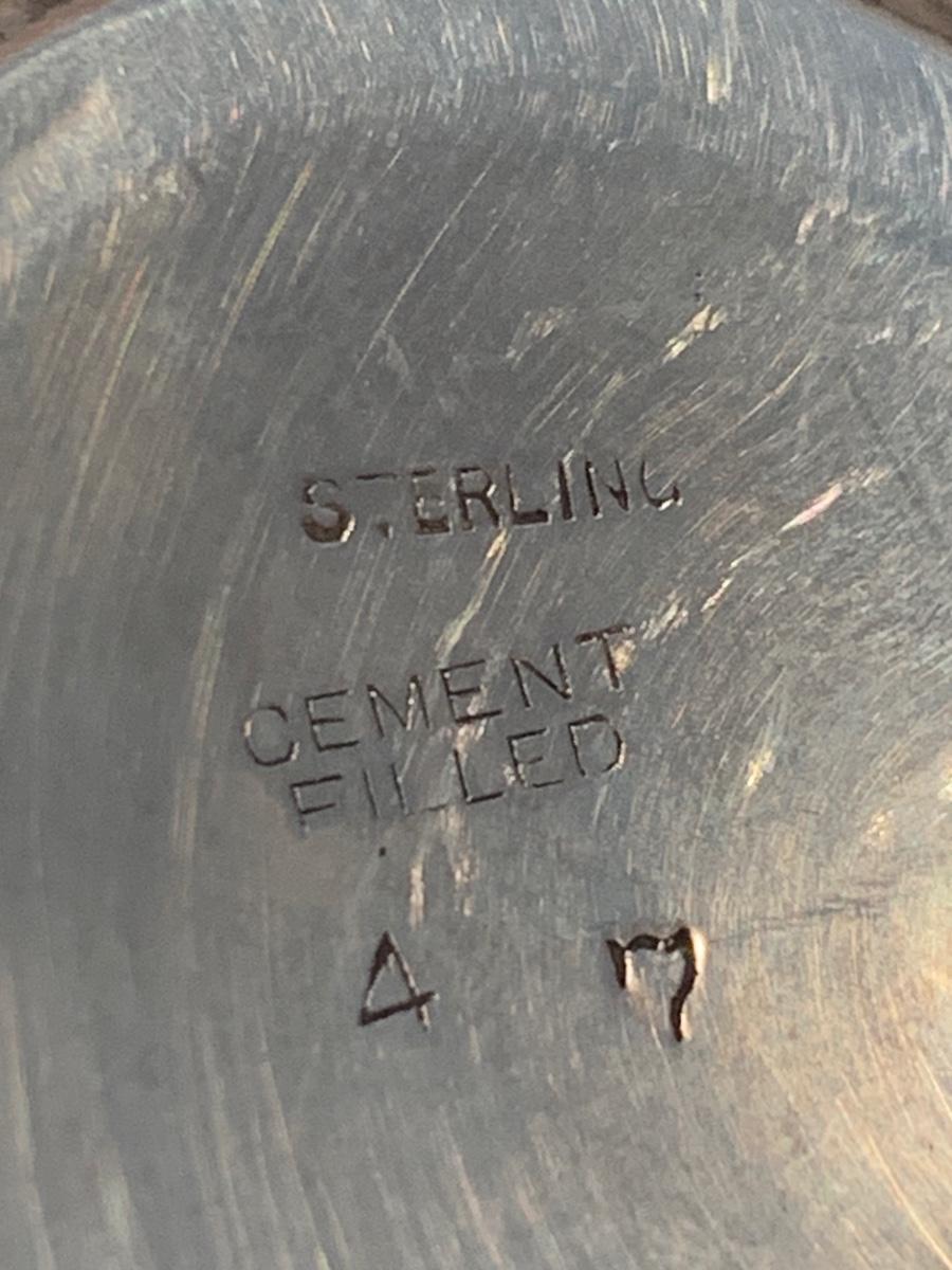 Total weight is 178 grams - item is sterling weighted - cement filled base. See all photos.