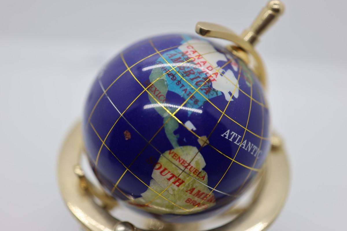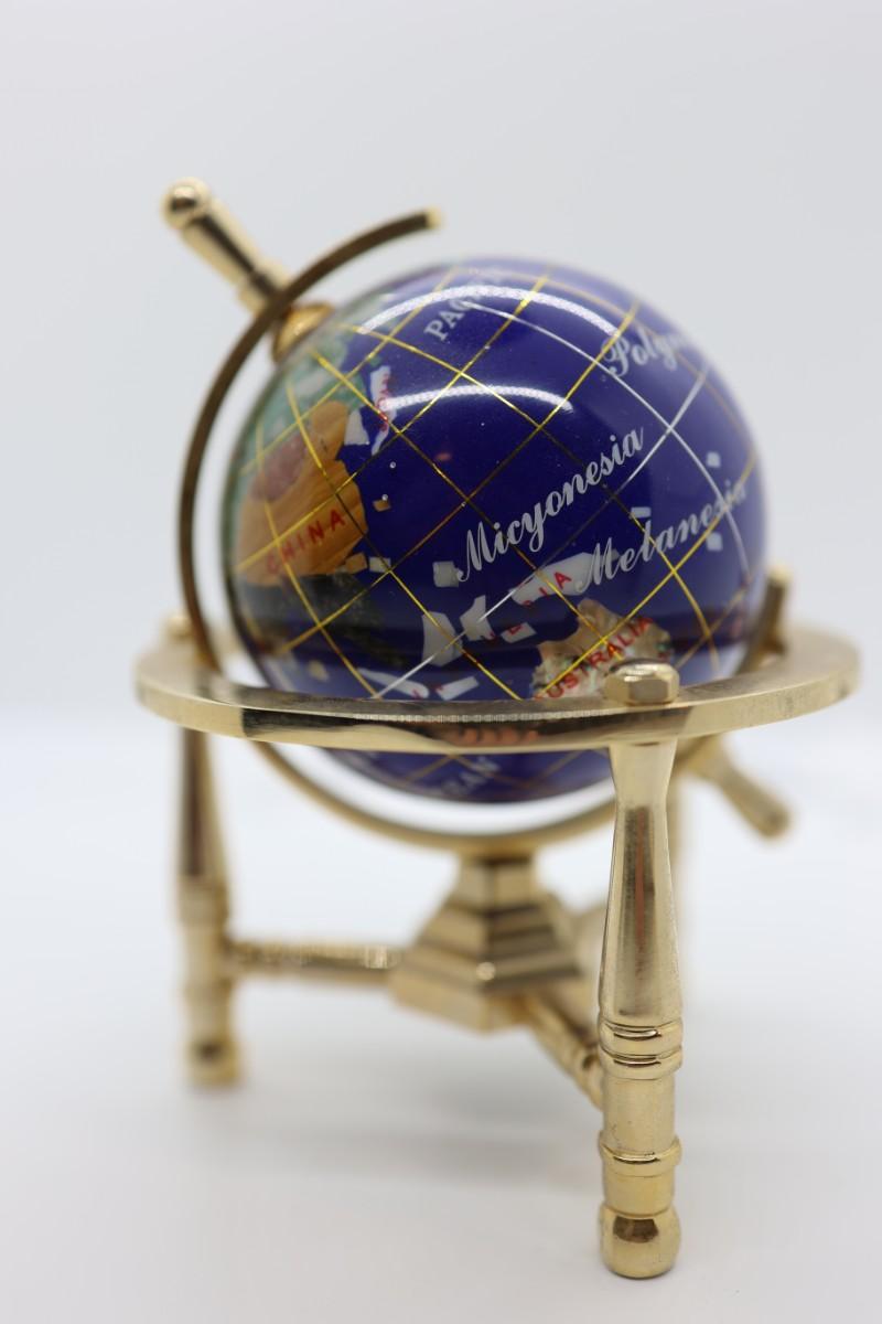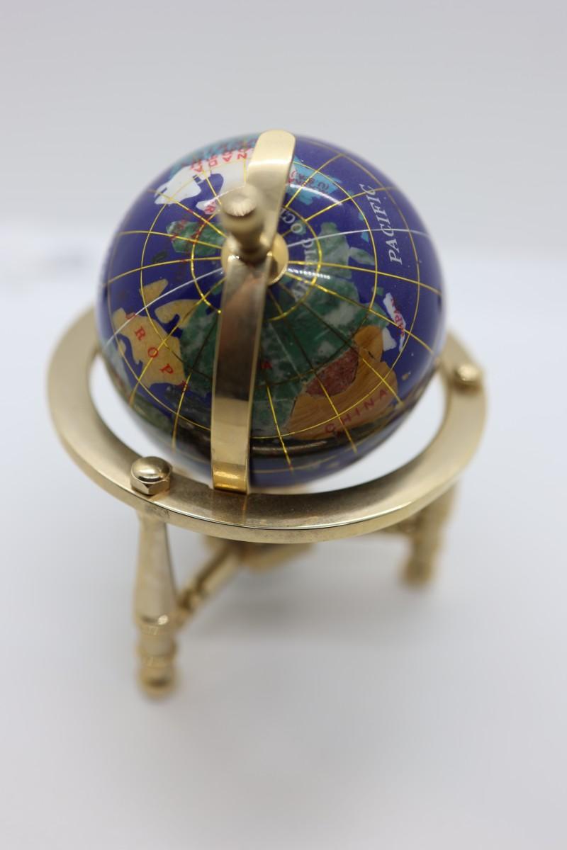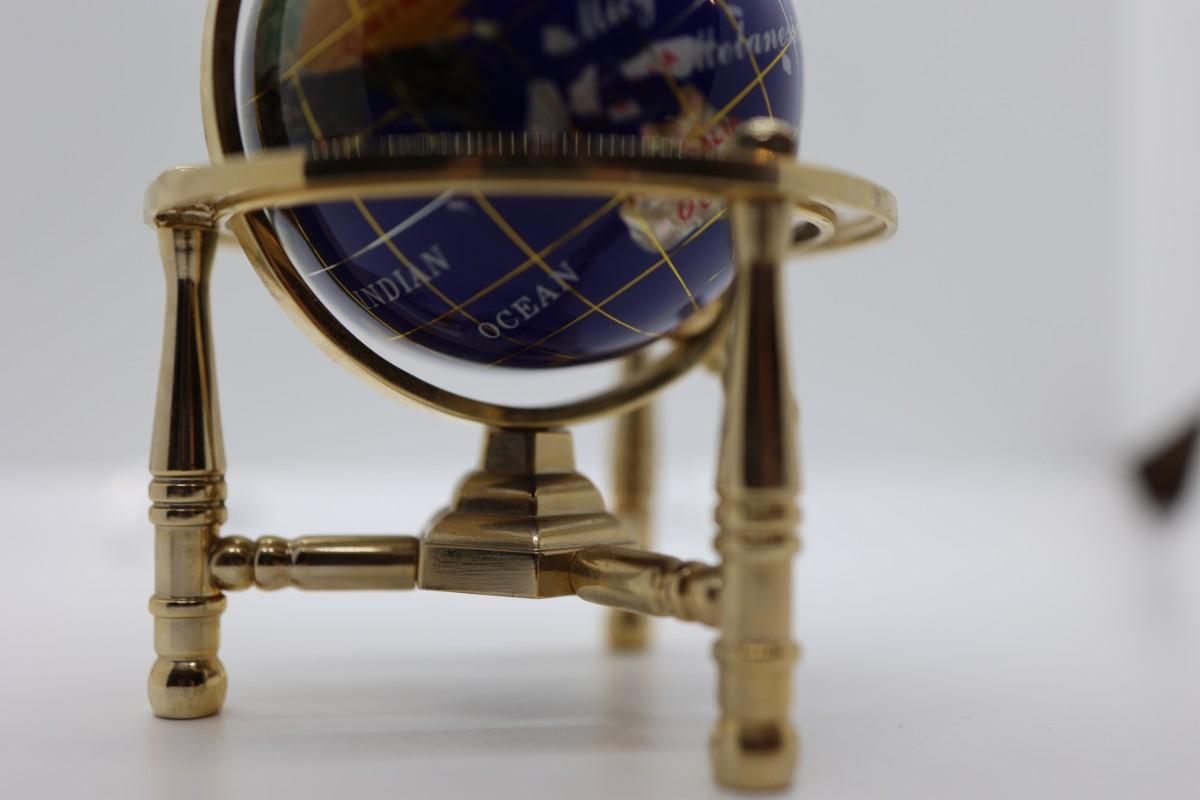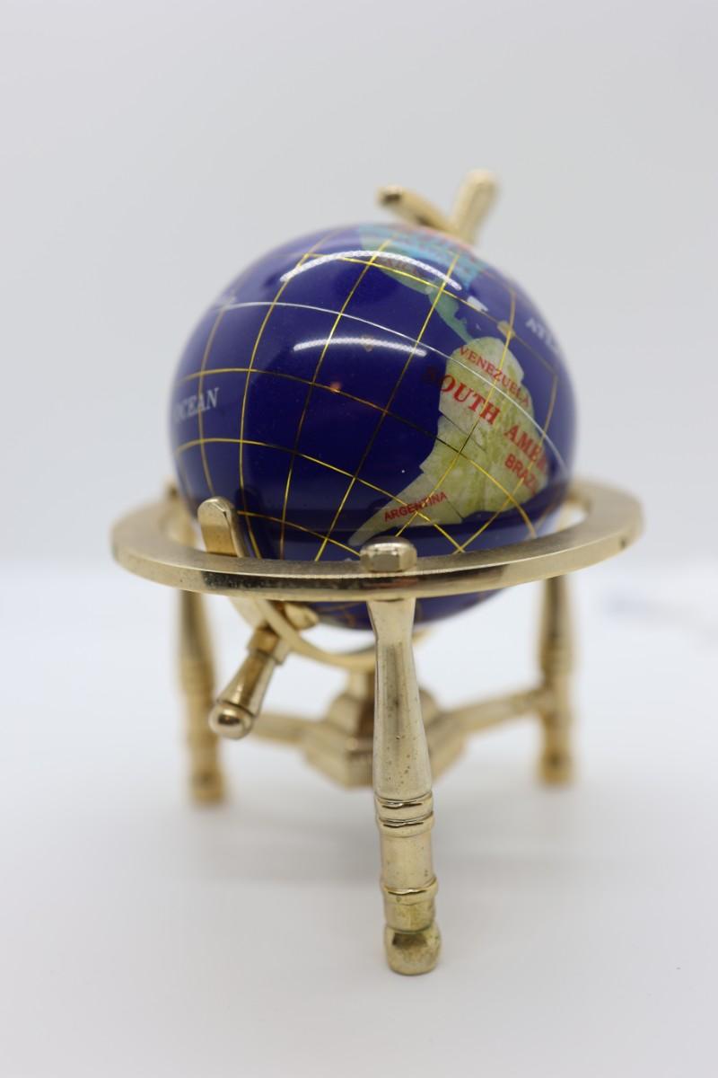 6" Table Top Gemstone World Globe with Gold Tripiod