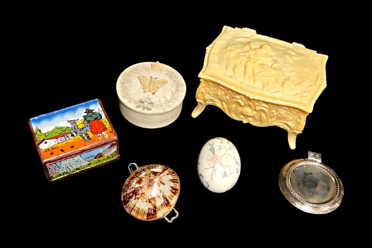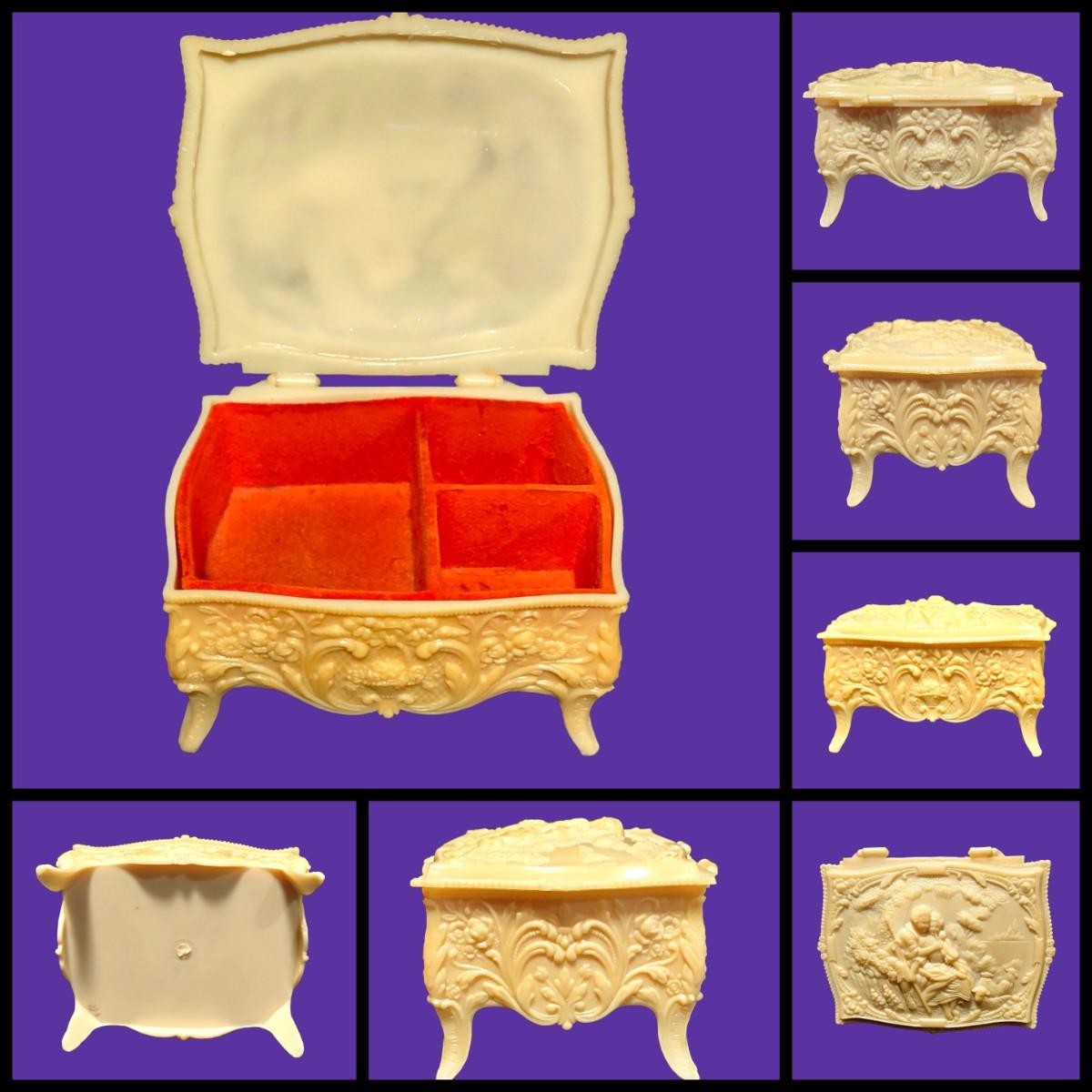 1. Vintage creamy colored celluloid trinket box 5"L x 2.5"H x 4"W