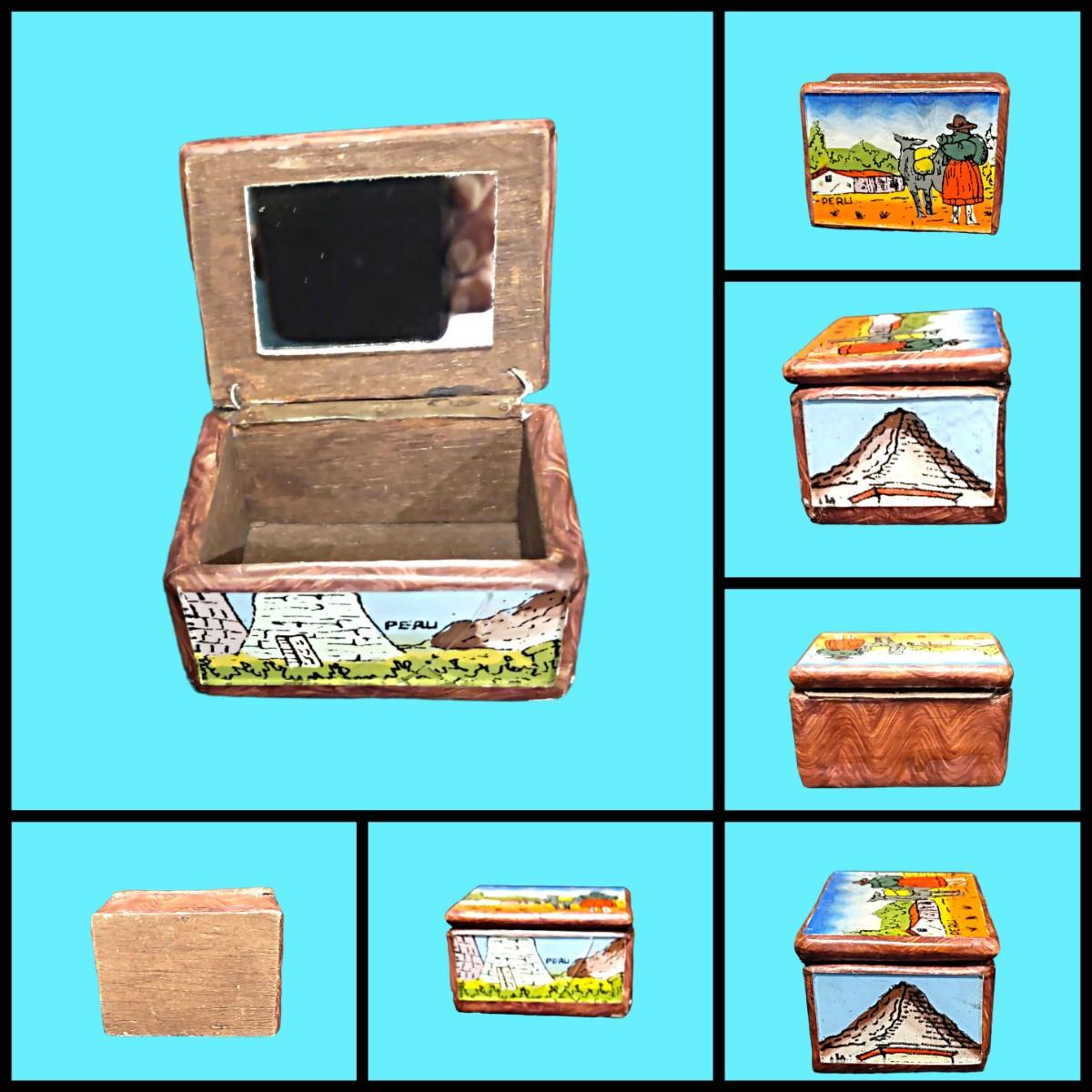 4. Peruvian Folk Art Trinket Box (glass has a crack on one side) 3"L x 1.7"H x 2.5"W