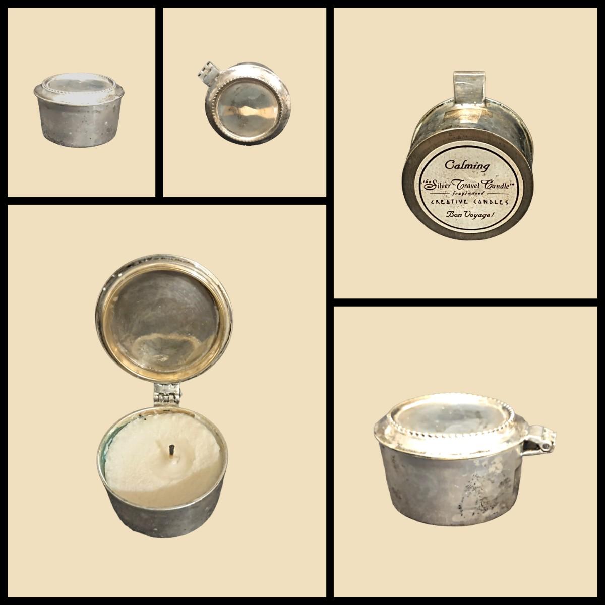 2. The Silver Travel Candle (Calming Scent) - refillable tealight candle holdrer