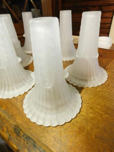 6 Tulip Shaped Glass Shades. 6 inches high, 4 1/2 inches across.