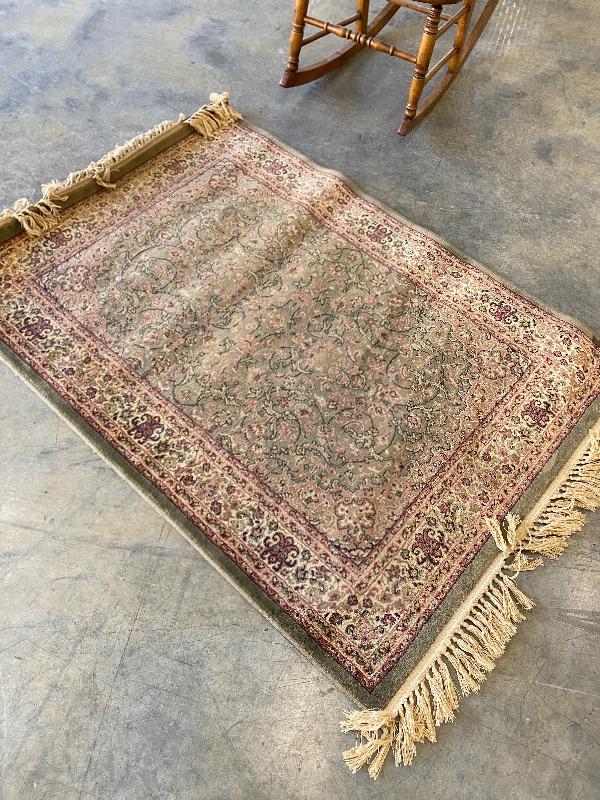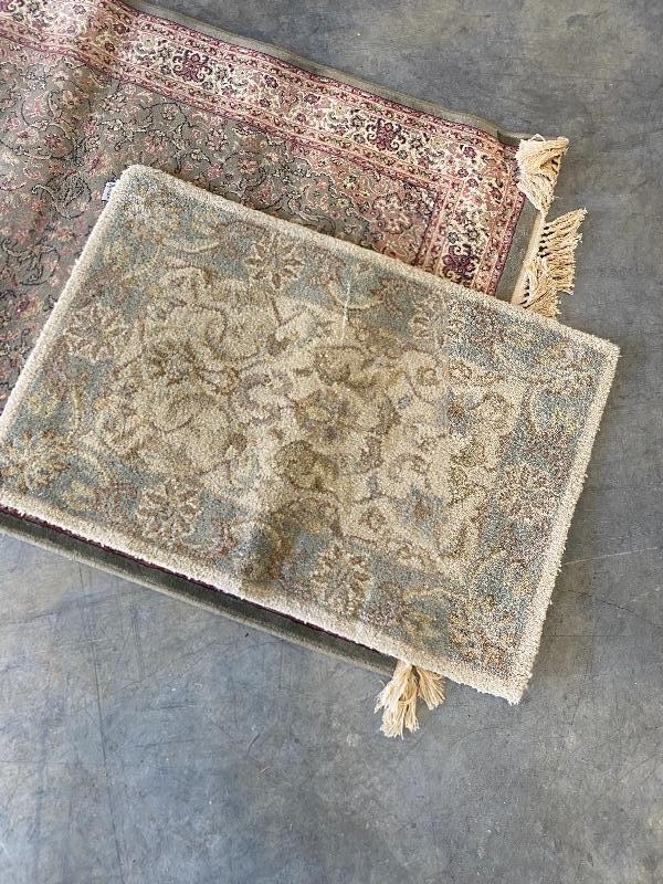 Two Rugs. Larger one is 3' x 5' and smaller one is 2' x 3'. Both could use a cleaning but do not have any smells or stains that are obvious to us.