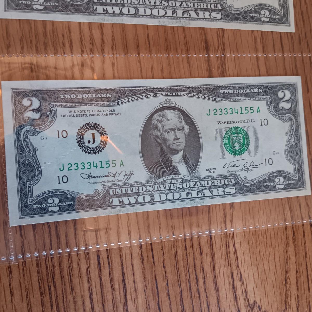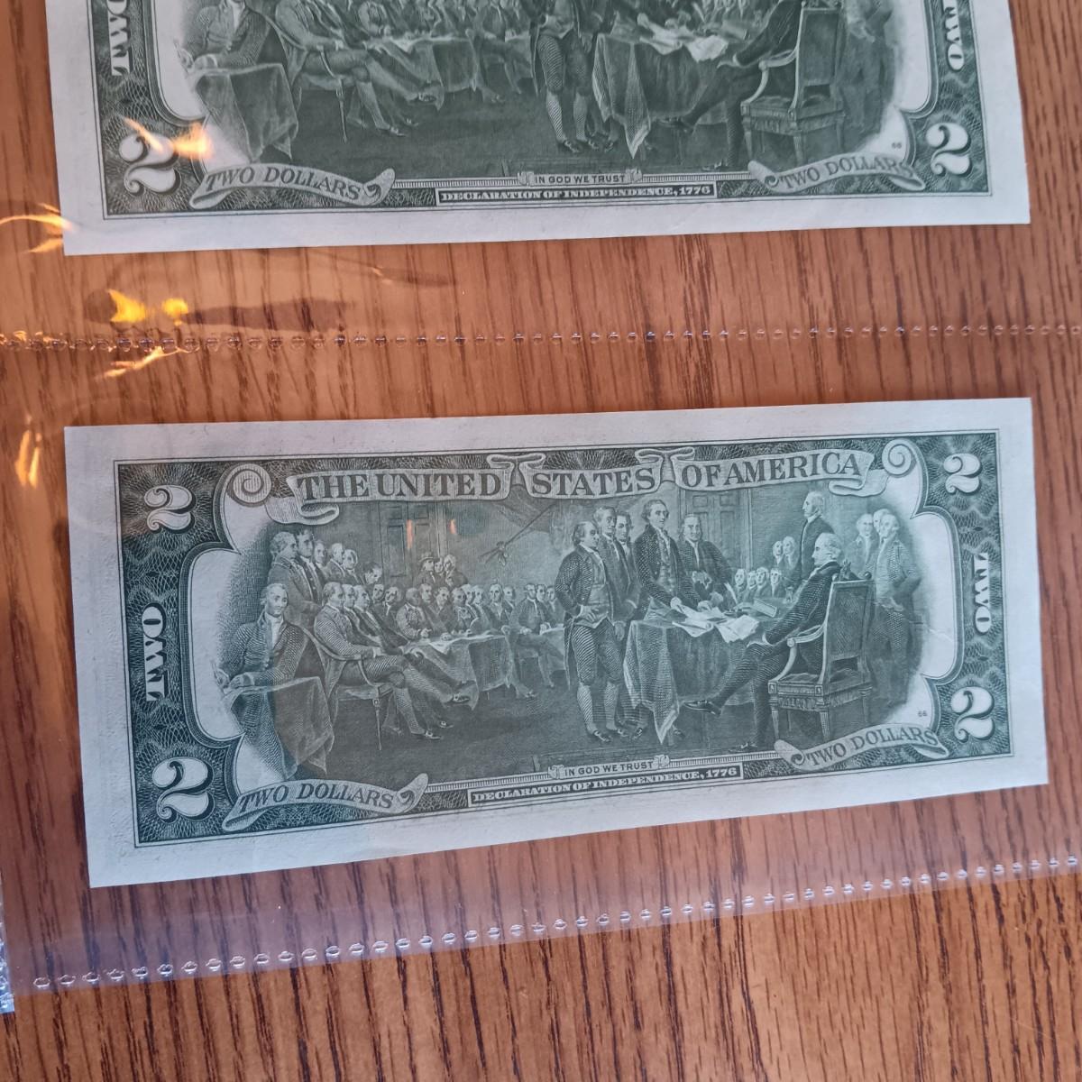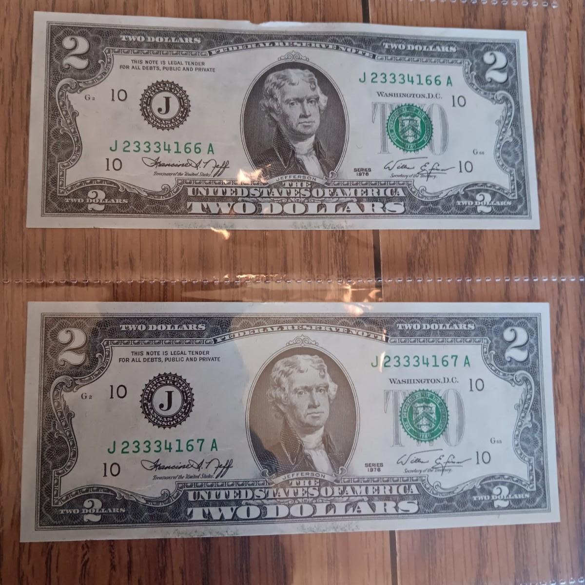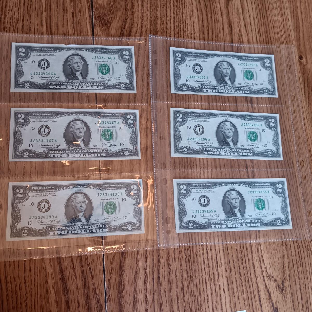 SIX 2 DOLLAR BILLS 2 FROM LEFT SIDE AND 2 FROM RIGHT ARE SEQUENCIAL